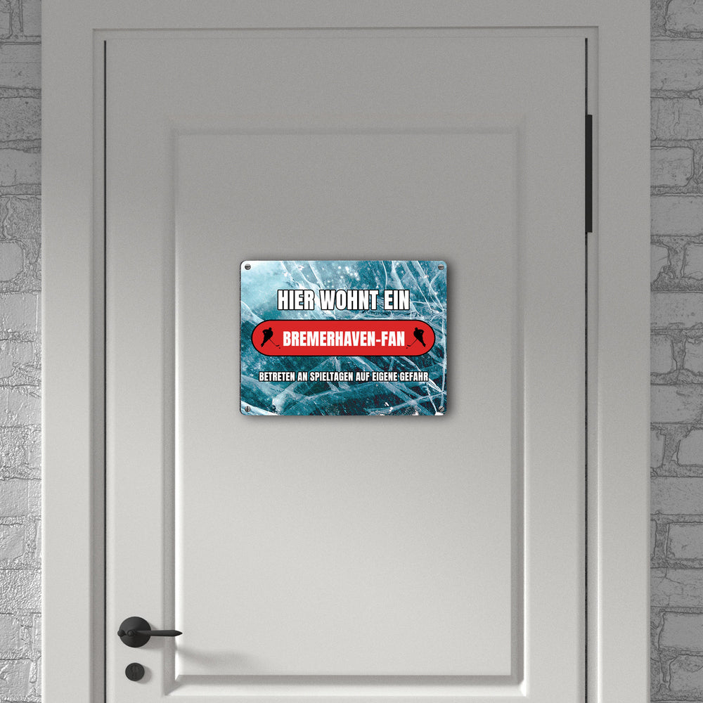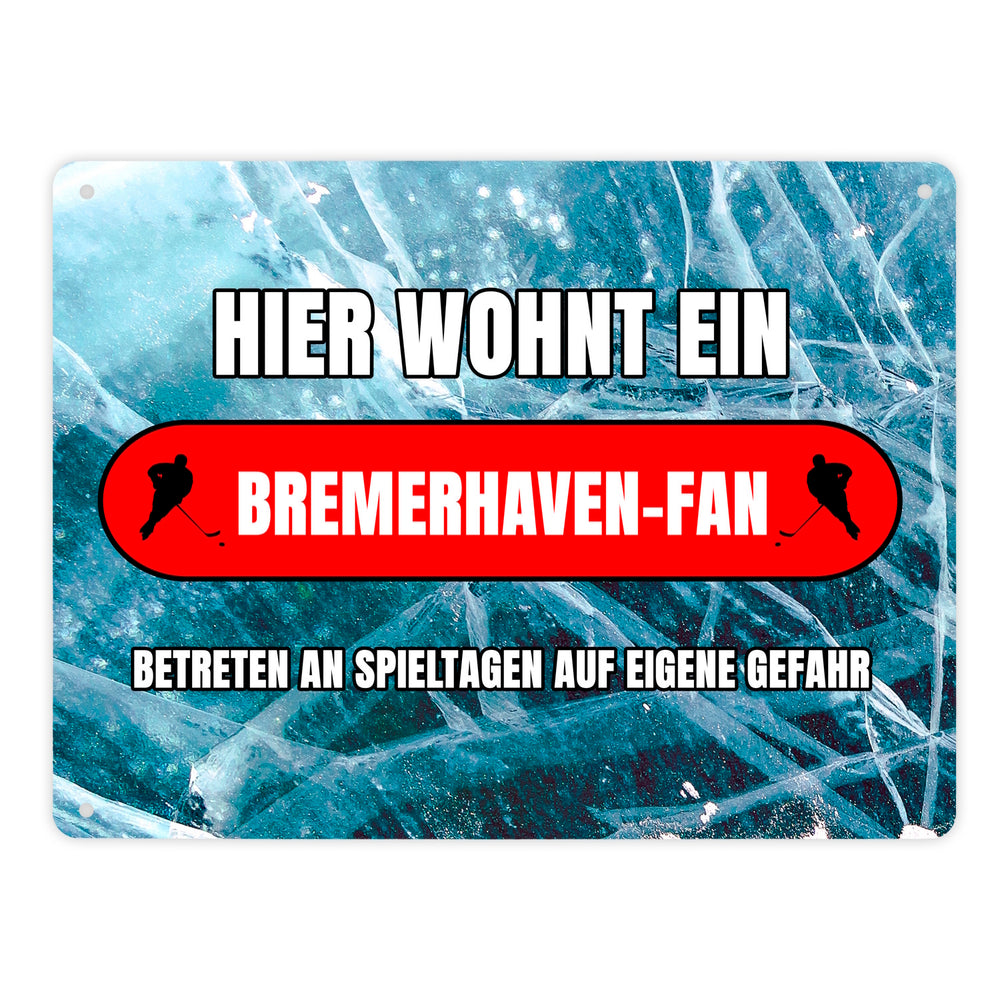 • 1x Hier wohnt ein Bremerhaven-Fan Metallschild in 15x20 cm mit Eishallen Boden-Motiv in der gewählten Größe