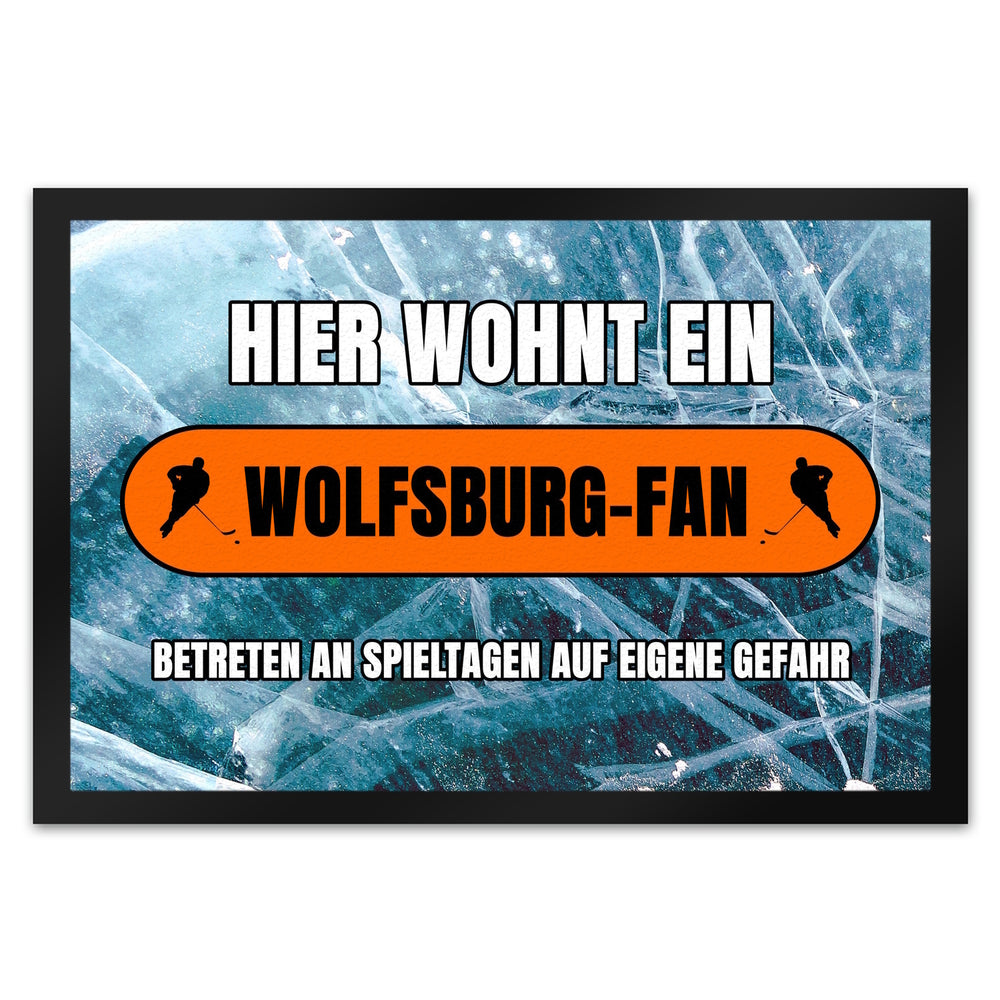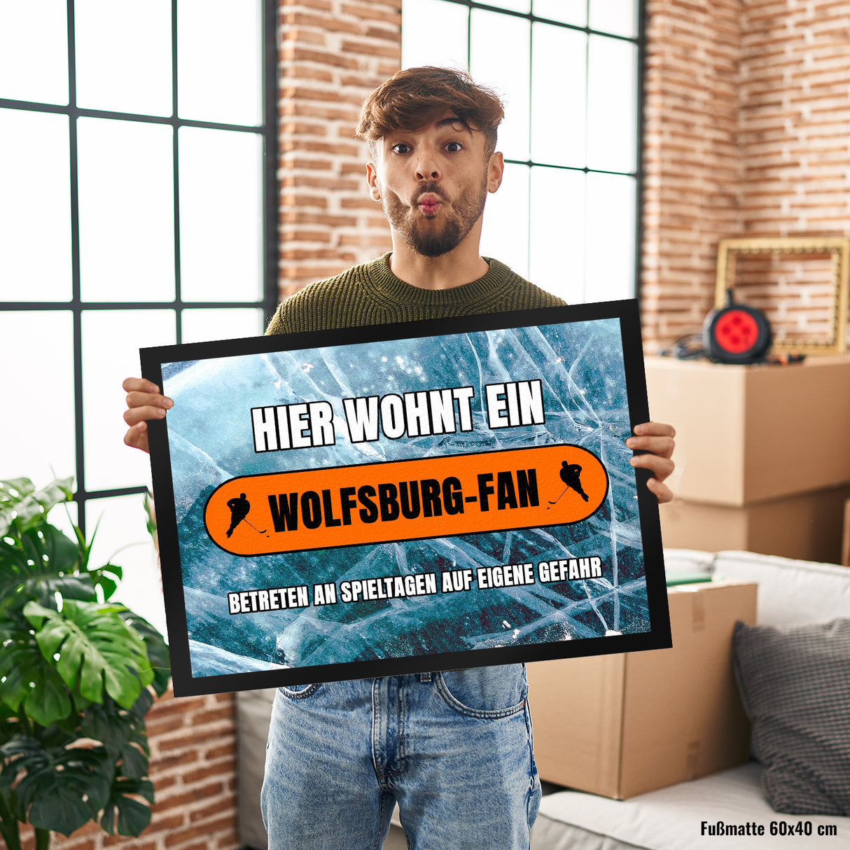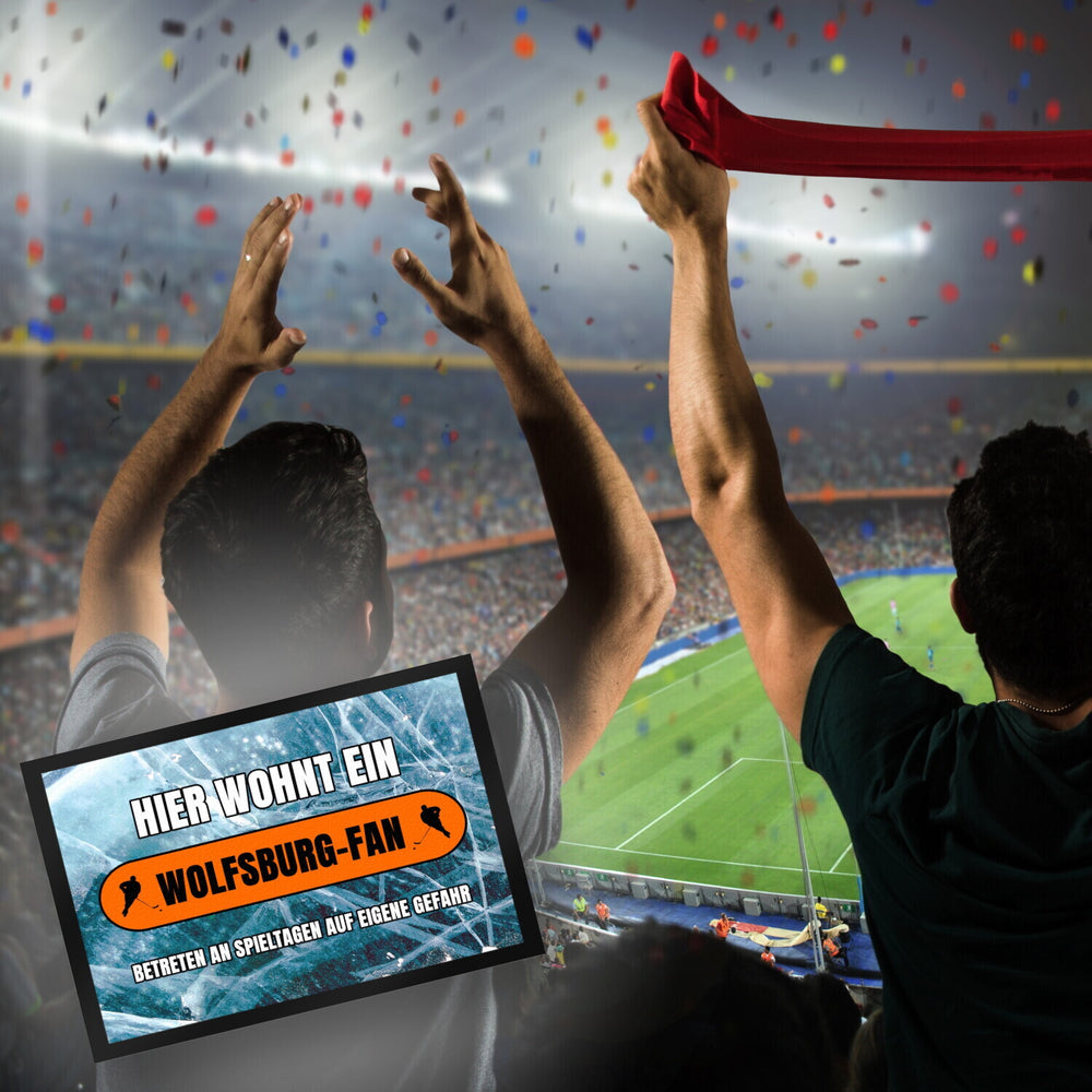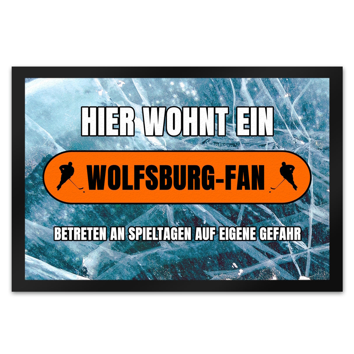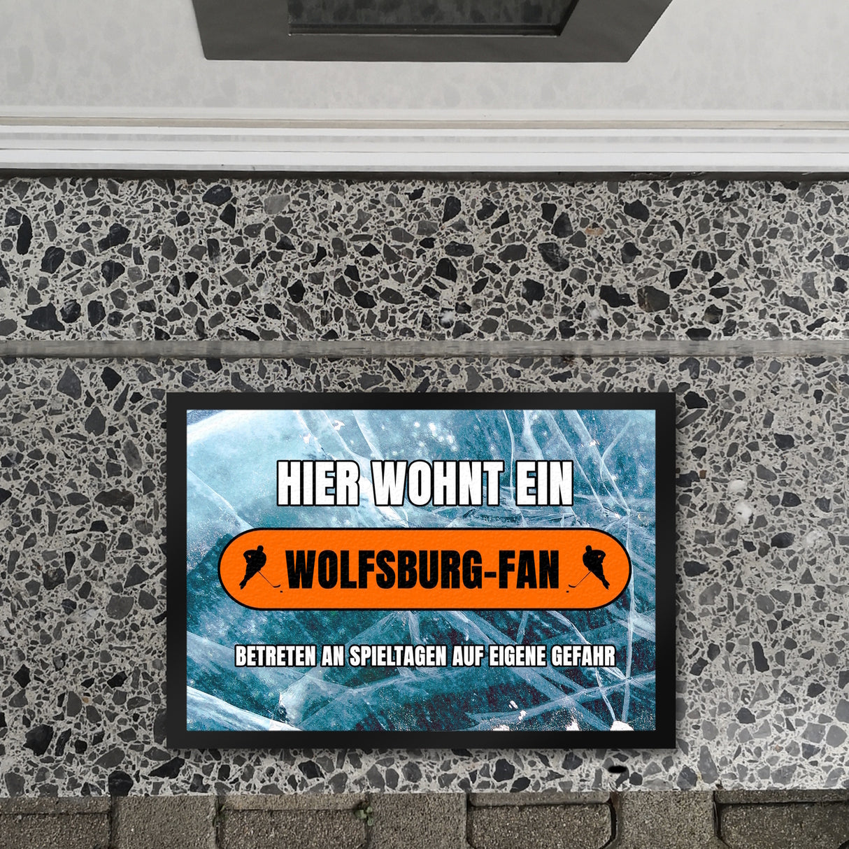 Hier wohnt ein Wolfsburg-Fan Fußmatte in 35x50 cm mit Eishallen Boden-Motiv