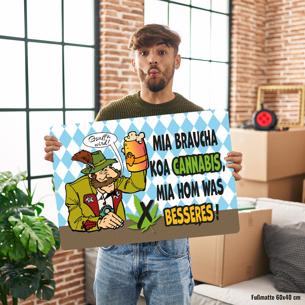 - Stolpere mit Lachen über die Schwelle, denn die "Bier statt Gras Biertrinker Fußmatte" begrüßt dich auf Bayerisch! Diese Fußmatte zeigt einen urigen Bayer im Alpenlook, der lieber zum Maß als zum Joint greift. "Gsuffa wird! Mia braucha koa Cannabis, mia hom was Besseres!" – dieser Spruch wird jedem Besucher ein Schmunzeln entlocken.
