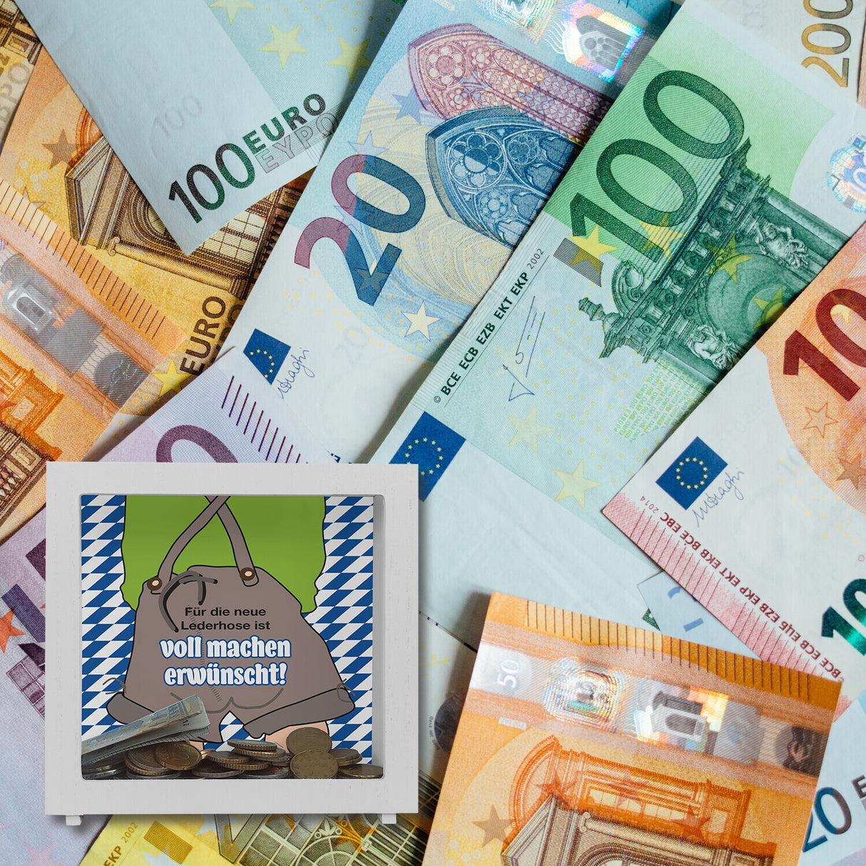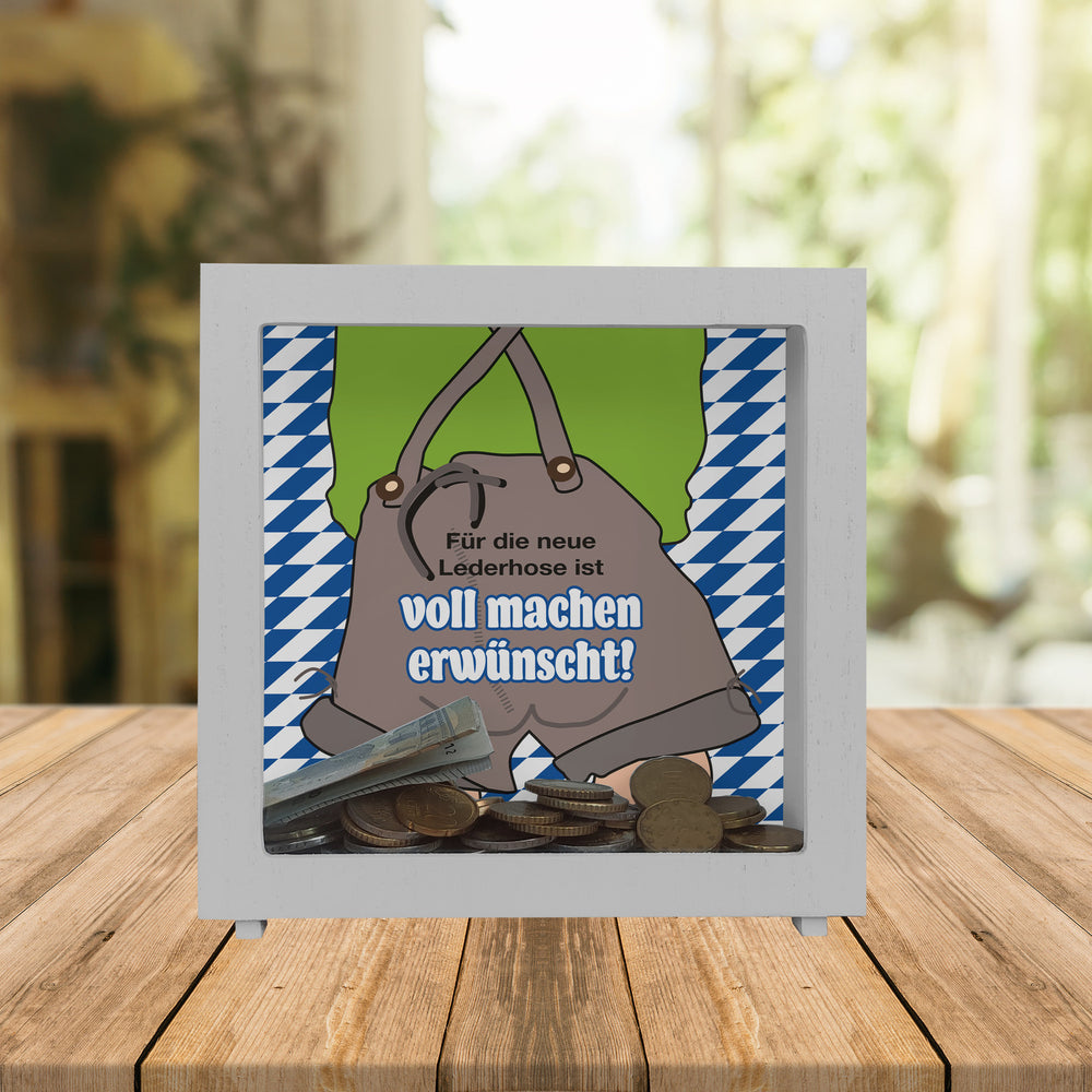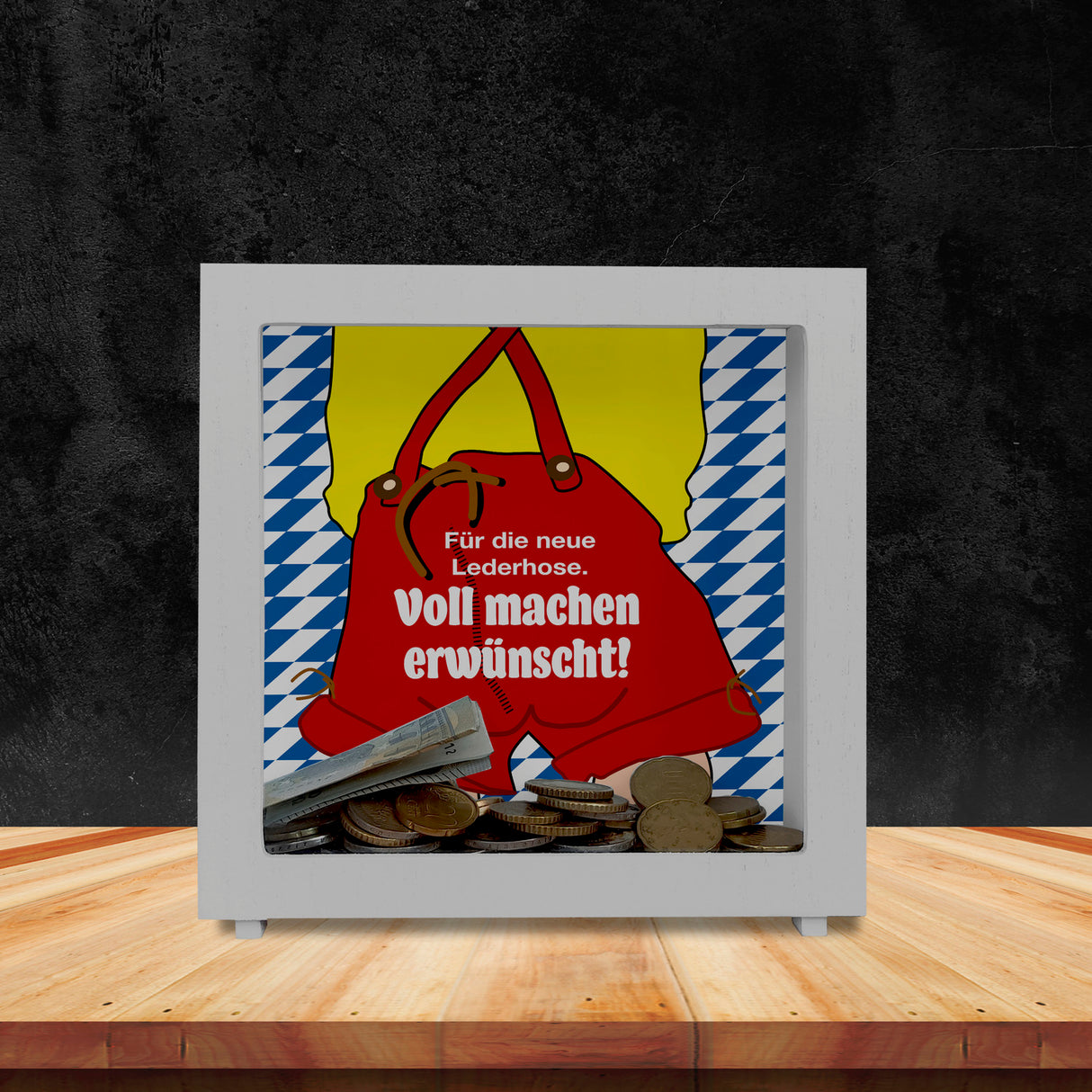 - 1x Für die neue Lederhose ist voll machen erwünscht! Spardose in der gewählten Ausführung
