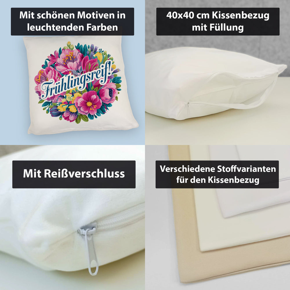 • 1x Frühlingsreif Blumendesign Kissen in der gewählten Ausführung