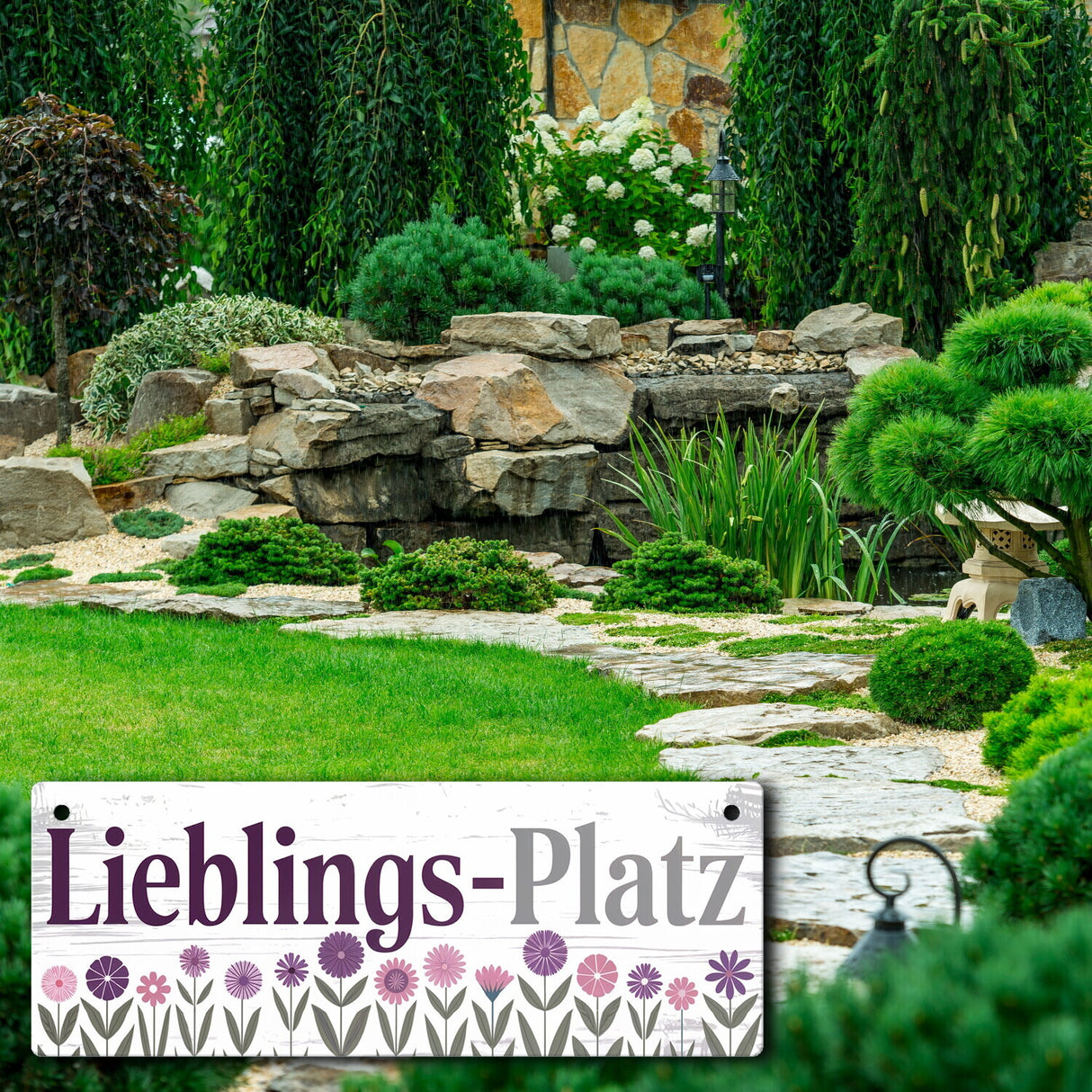 - 1x Lieblings-Platz Metallschild mit Blumen in der gewählten Größe