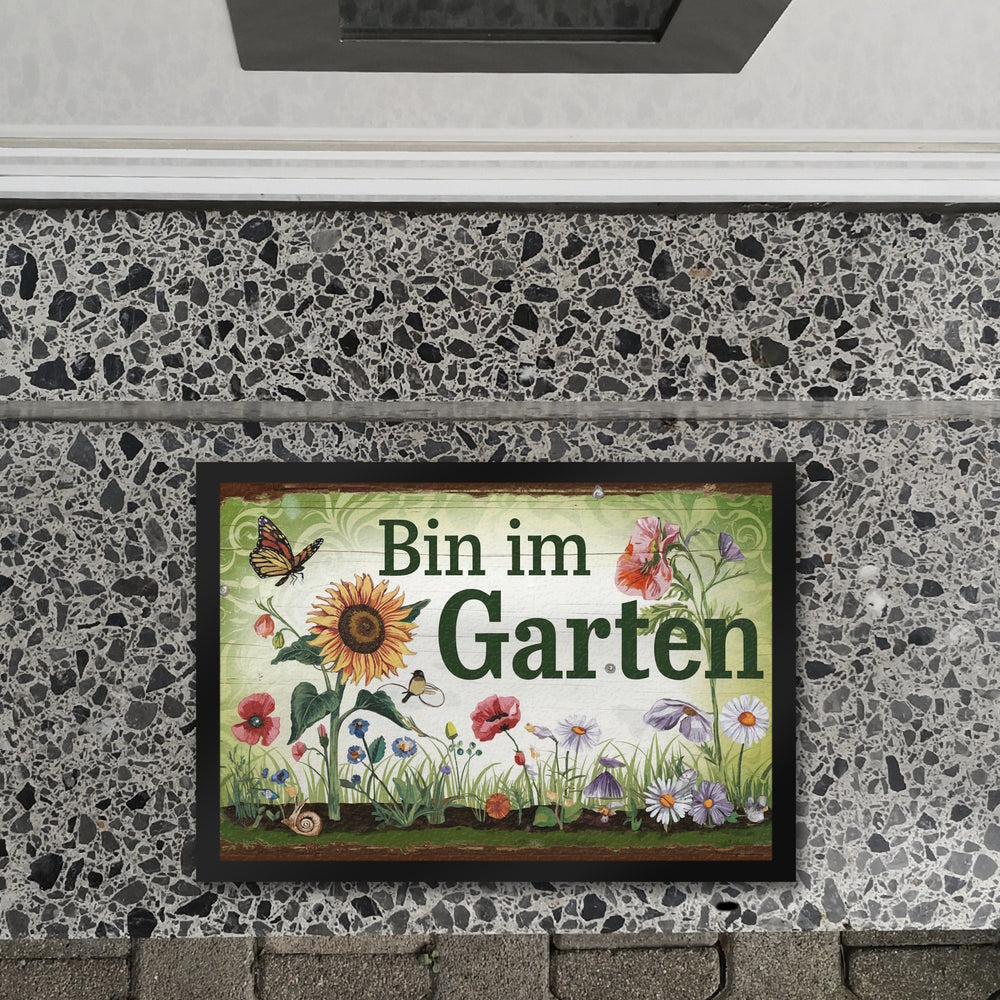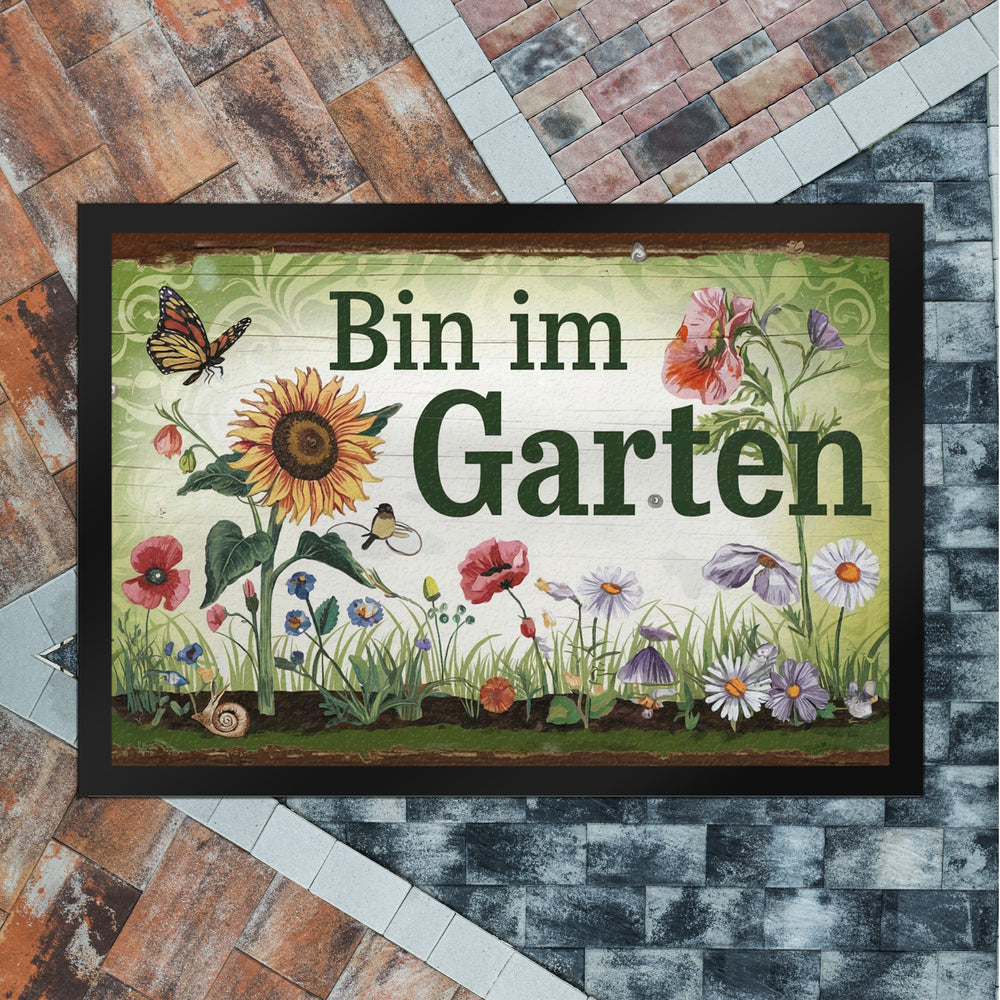 Bin im Garten Schmetterling und Blumen Fußmatte in 35x50 cm