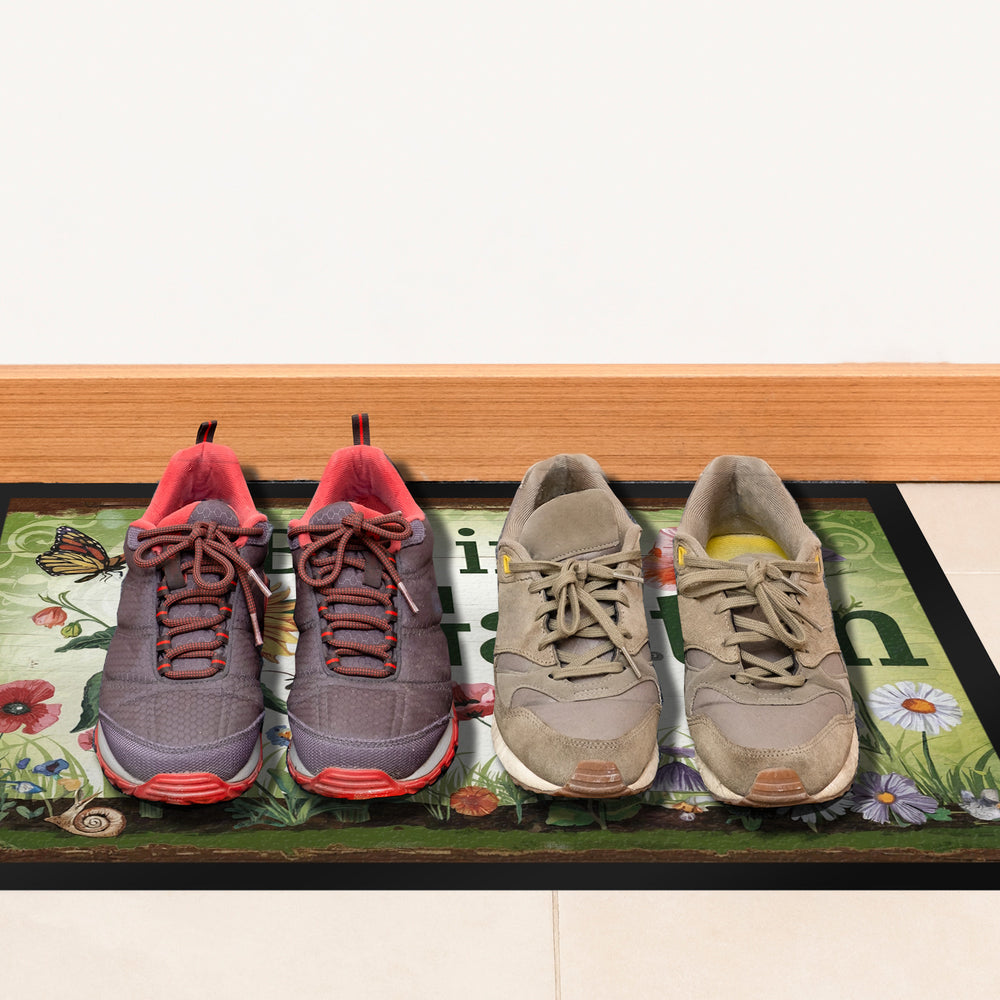 • 1x Bin im Garten Schmetterling und Blumen Fußmatte in 35x50 cm in der gewählten Größe