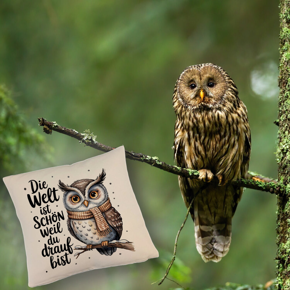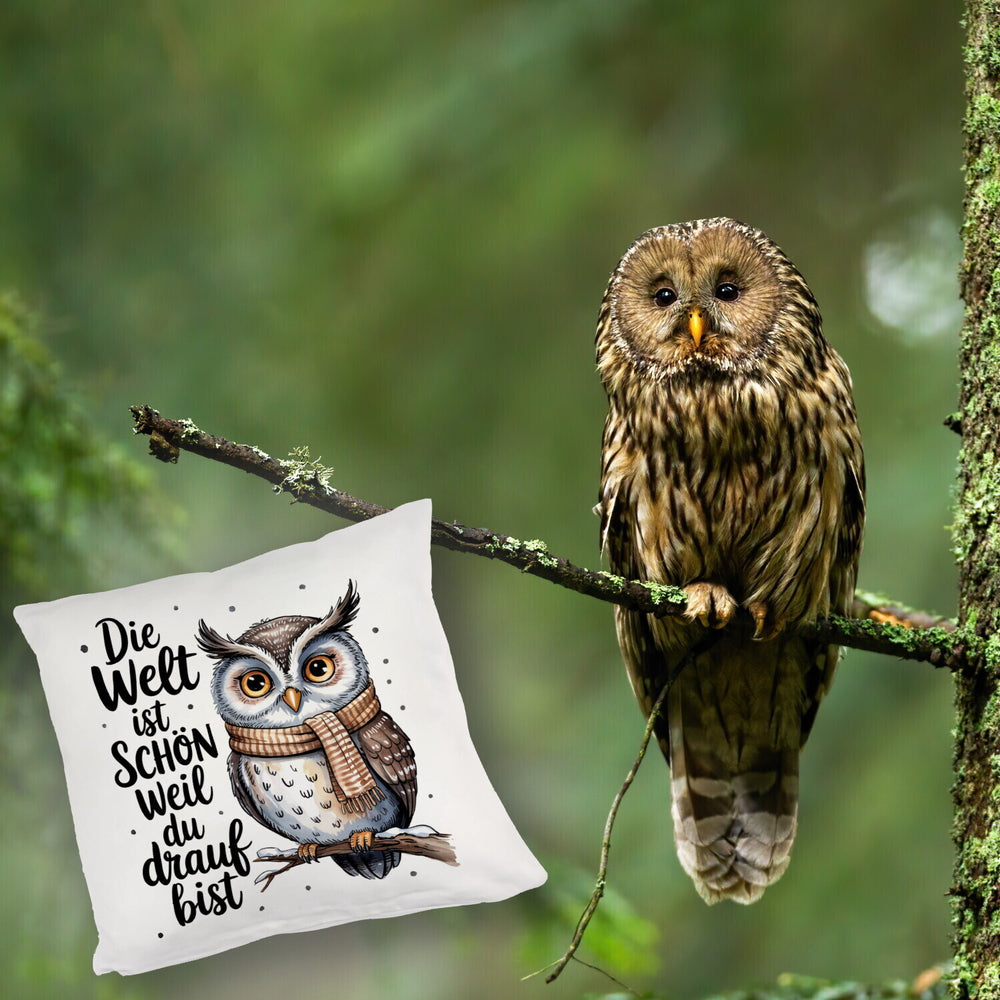 - 1x Eule mit Spruch Kissen für Eulenliebhaber in der gewählten Ausführung