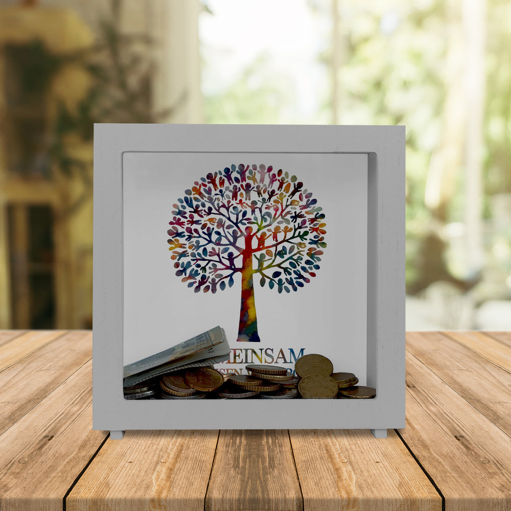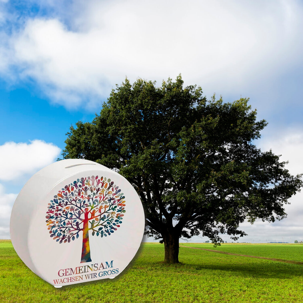- 1x Gemeinsam wachsen, Baum aus Kindern Spardose in der gewählten Ausführung
