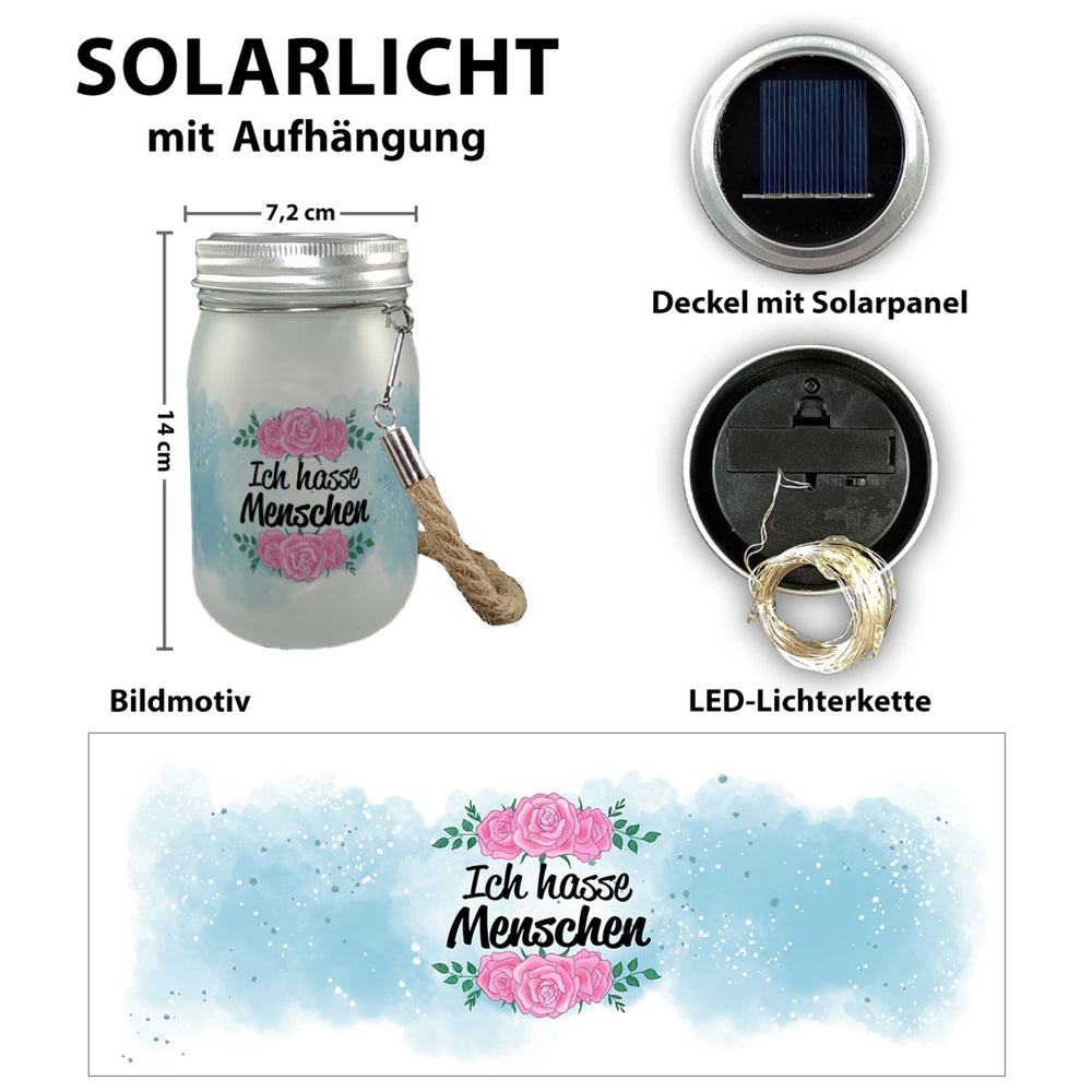 - Lieferumfang: 1x Ich hasse Menschen Solarlicht mit Blumen