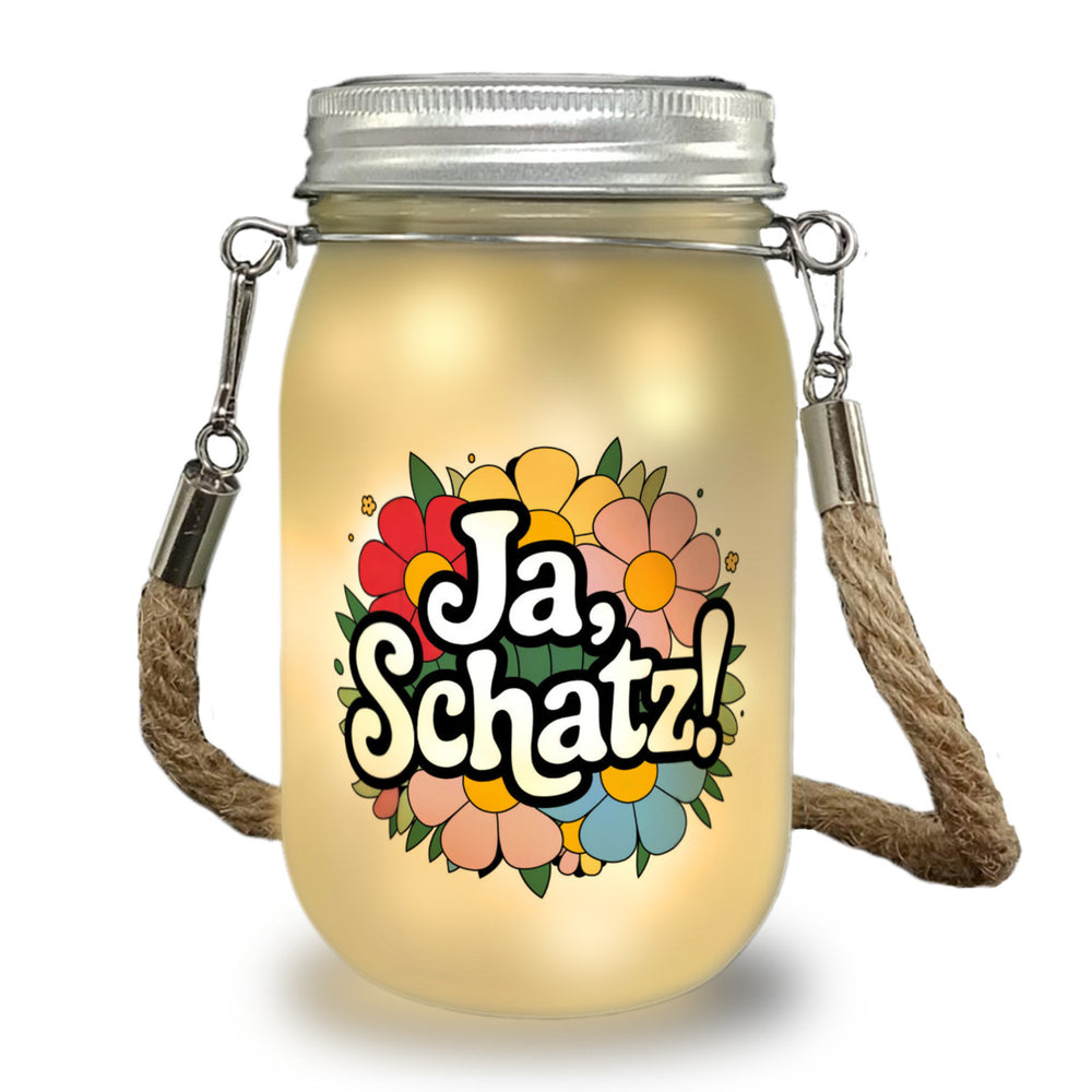 - Überrasche deinen Partner mit dem ultimativen Geschenk, das garantiert für Lacher sorgt! Das "Ja, Schatz!" Solarlicht mit Blumenmotiv ist nicht nur ein humorvolles Deko-Element, sondern auch ein leuchtender Liebesbeweis. Denn, wenn du "Ja, Schatz!" sagst, schenkst du nicht nur Licht, sondern auch ein Lächeln.