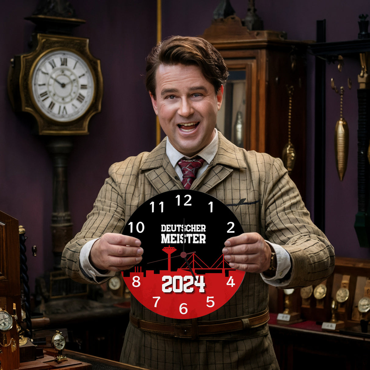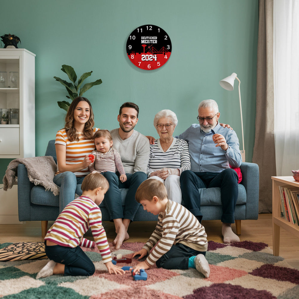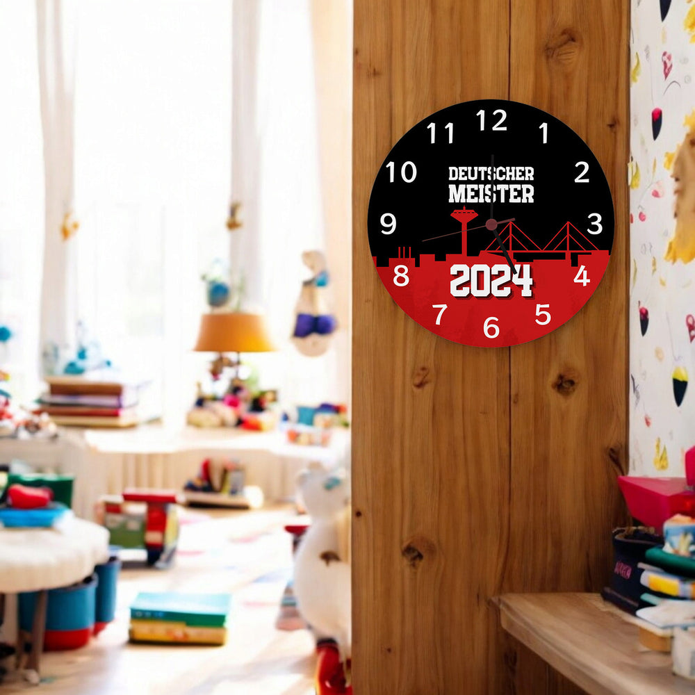 - 1x Leverkusen Wanduhr mit Spruch Deutscher Meister 2024 in der gewählten Variante