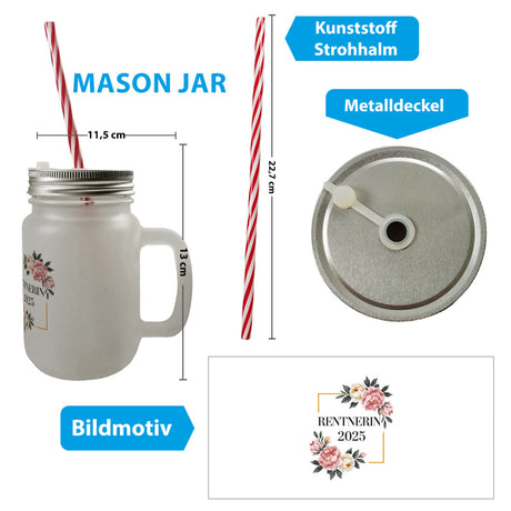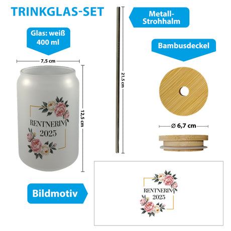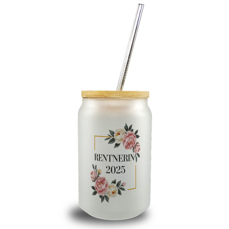 €12,95Grundpreis /Nicht verfügbar Rentnerin 2025 Blumen Trinkglas mit Bambusdeckel für den Ruhestand