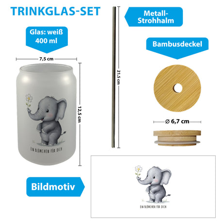 €9,95Grundpreis /Nicht verfügbarAuf LagerGrauer Elefant - Blümchen für dich Trinkglas mit Bambusdeckel