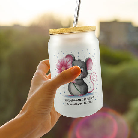 €12,95Grundpreis /Nicht verfügbar Maus mit Blume Trinkglas mit Bambusdeckel - wundervoller Tag