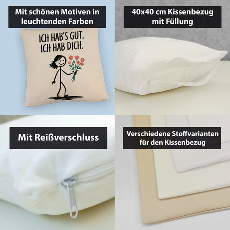 Ab €14,90Grundpreis /Nicht verfügbarAuf LagerIch hab's gut - Ich hab dich Kissen mit Strichmännchen