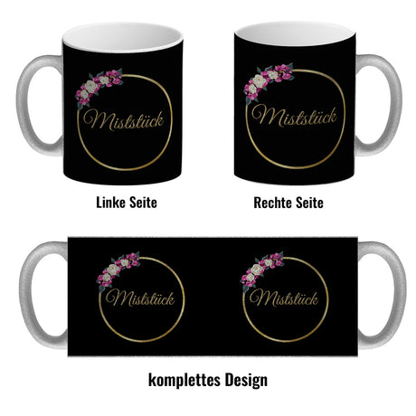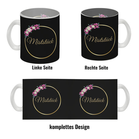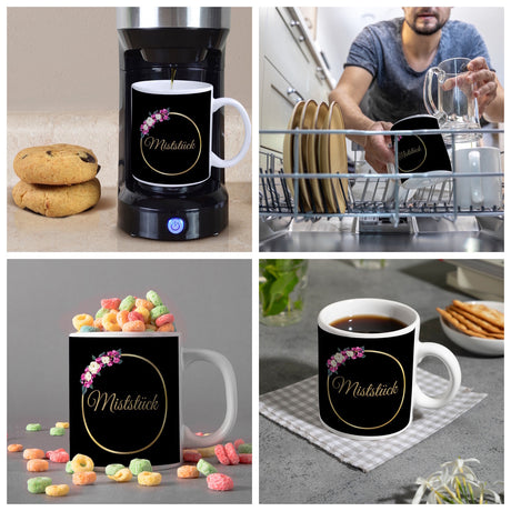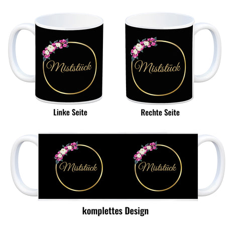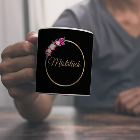 €9,95Grundpreis /Nicht verfügbarAuf LagerKaffeebecher Miststück mit Goldrahmen und Blumen Schimpfwort-Tasse