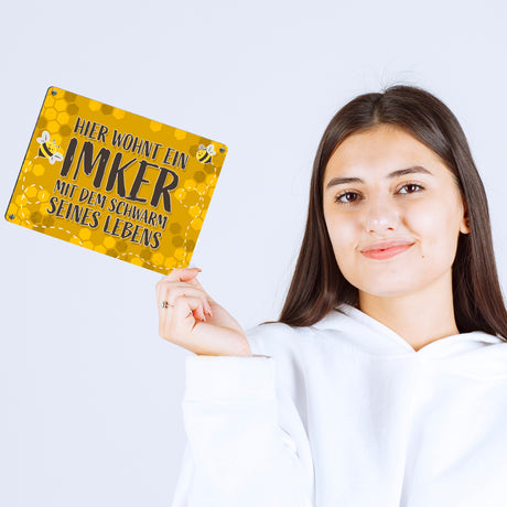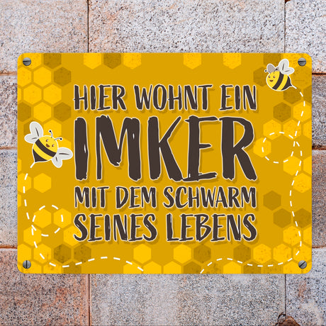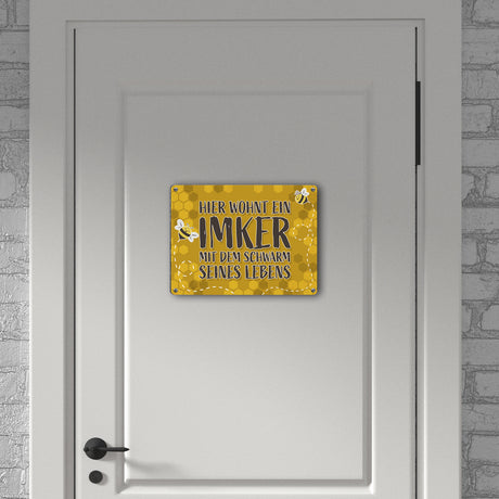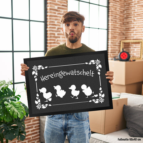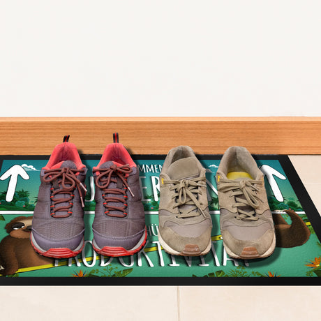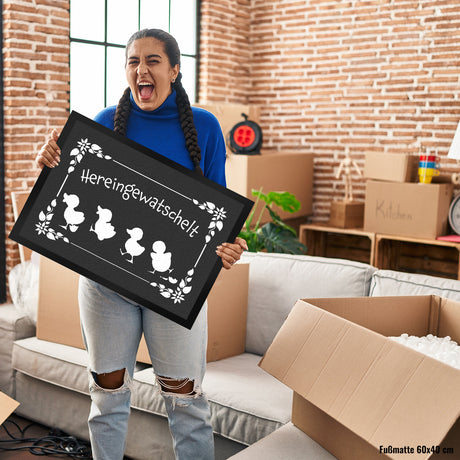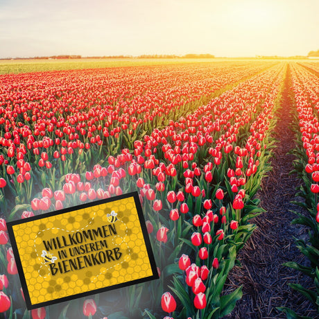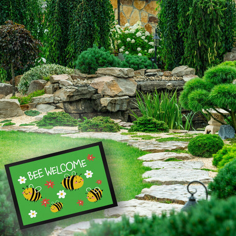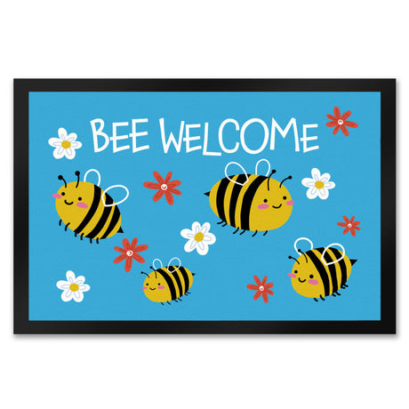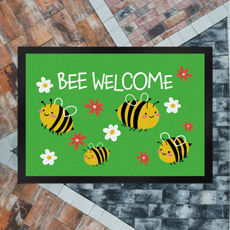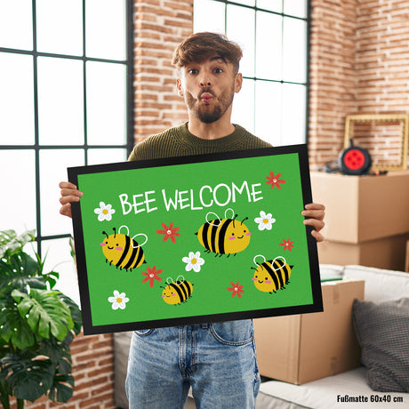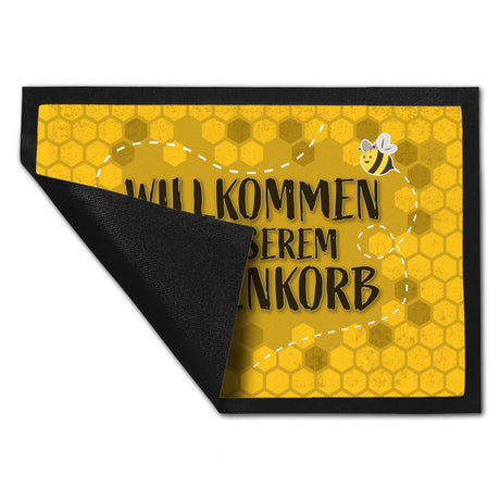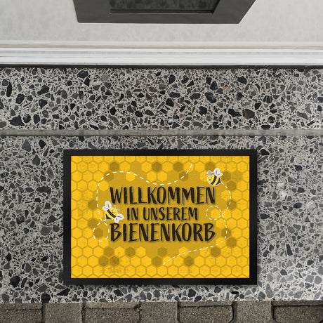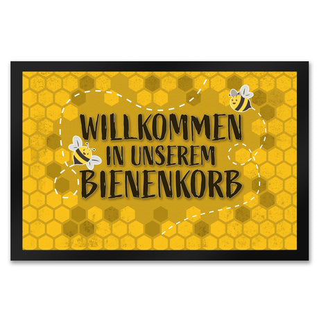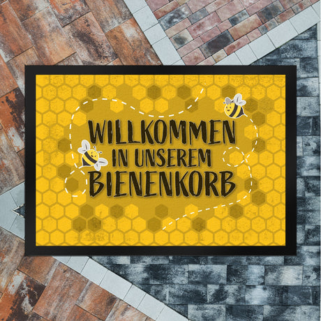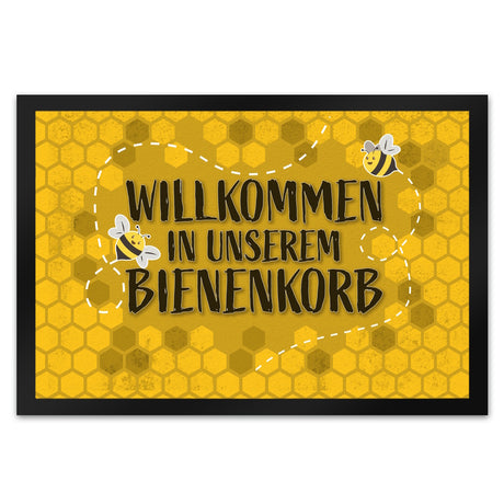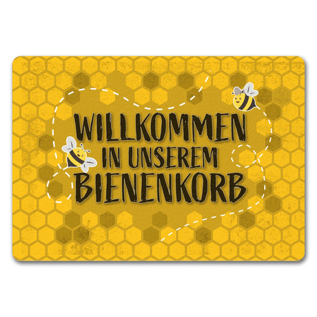 Willkommen in unserem Bienenkorb - Fußmatte mit summenden Bienen und Honigwabenmotiv