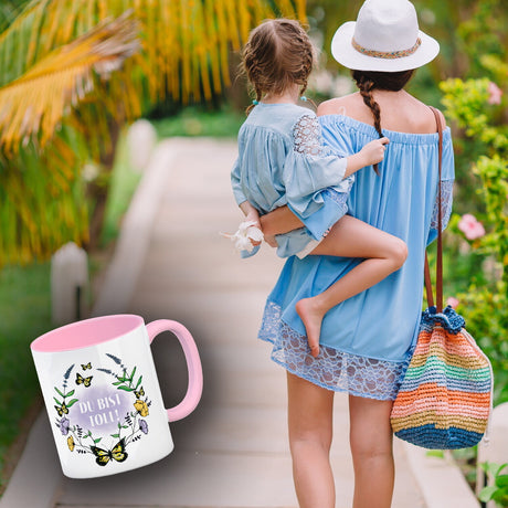 Ab €12,95Grundpreis /Nicht verfügbarAuf LagerKaffeebecher mit motivierenden Worten und Blumenrahmen mit Schmetterlingen