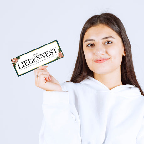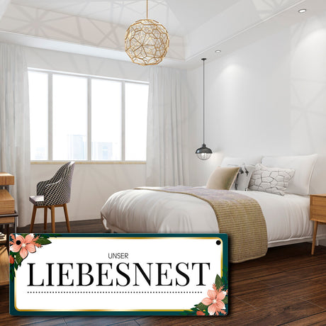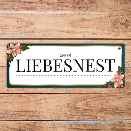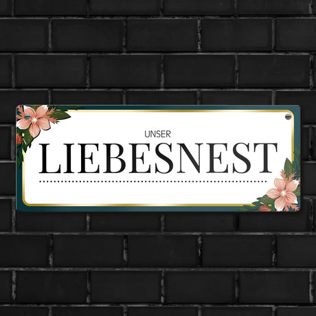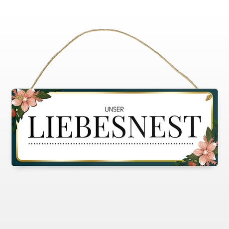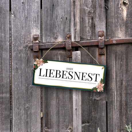 Ab €12,95Grundpreis /Nicht verfügbarAuf LagerPärchen Metallschild mit Blumen Motiv und süßem Spruch: Unser Liebesnest