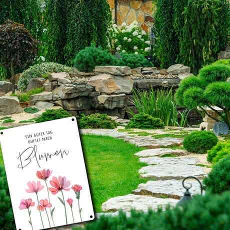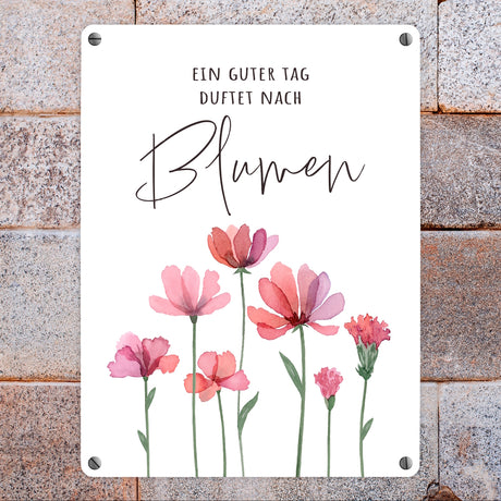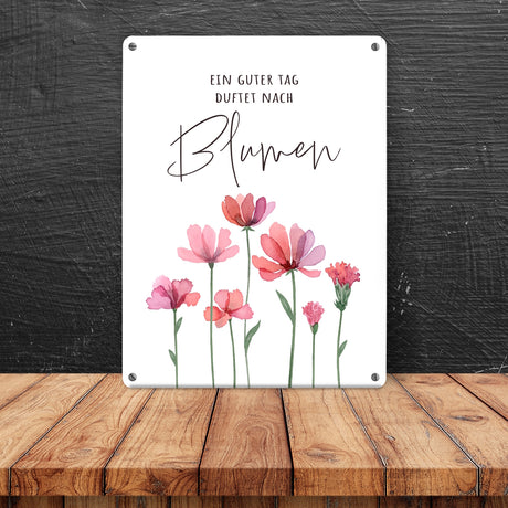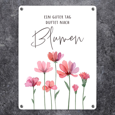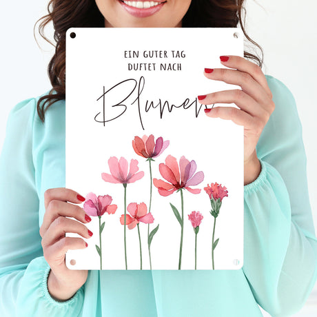 Ab €8,95Grundpreis /Nicht verfügbarAuf LagerAquarell Blumen Metallschild in 15x20 cm mit Spruch Ein guter Tag duftet nach Blumen