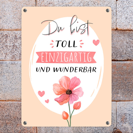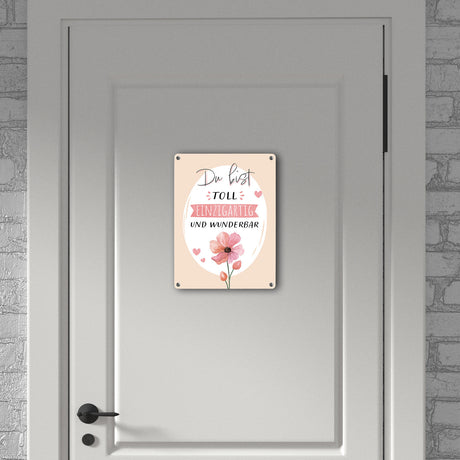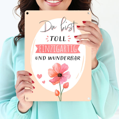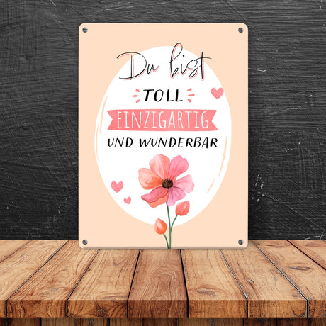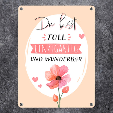 Blume Metallschild in 15x20 cm mit Spruch Du bist toll einzigartig und wunderbar