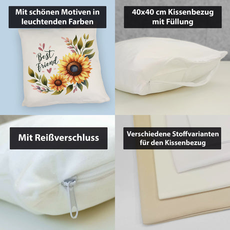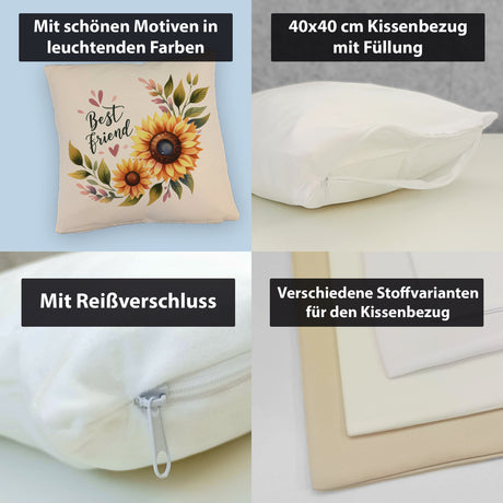 €11,95Grundpreis /Nicht verfügbarAuf LagerBeste Freundin Sonnenblume Kissen mit Spruch Best friend