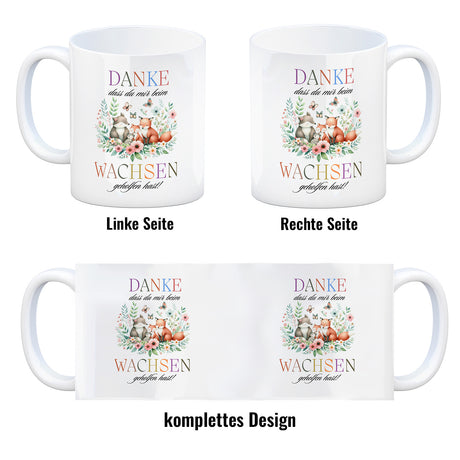 Ab €16,95Grundpreis /Nicht verfügbarAuf LagerWaldtiere Kaffeebecher mit Spruch Danke für Deine Hilfe beim Wachsen