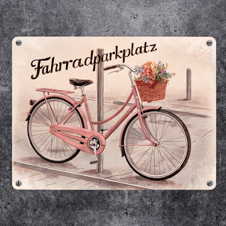 Ab €16,95Grundpreis /Nicht verfügbarAuf LagerFahrradparkplatz Metallschild in 15x20 cm mit rosa Drahtesel und Blumenkorb