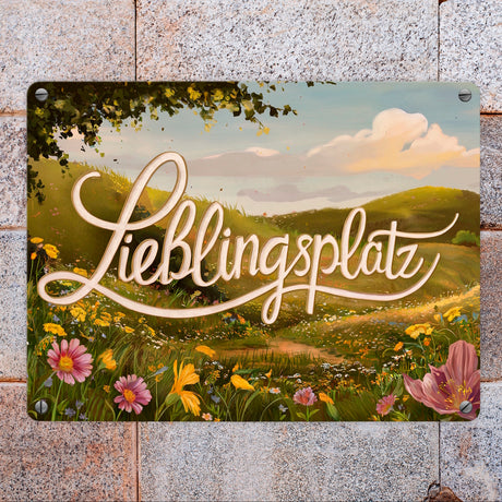 Ab €8,95Grundpreis /Nicht verfügbarAuf LagerLieblingsplatz Metallschild in 15x20 cm mit Blumenwiese
