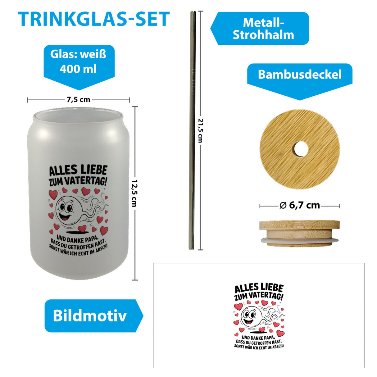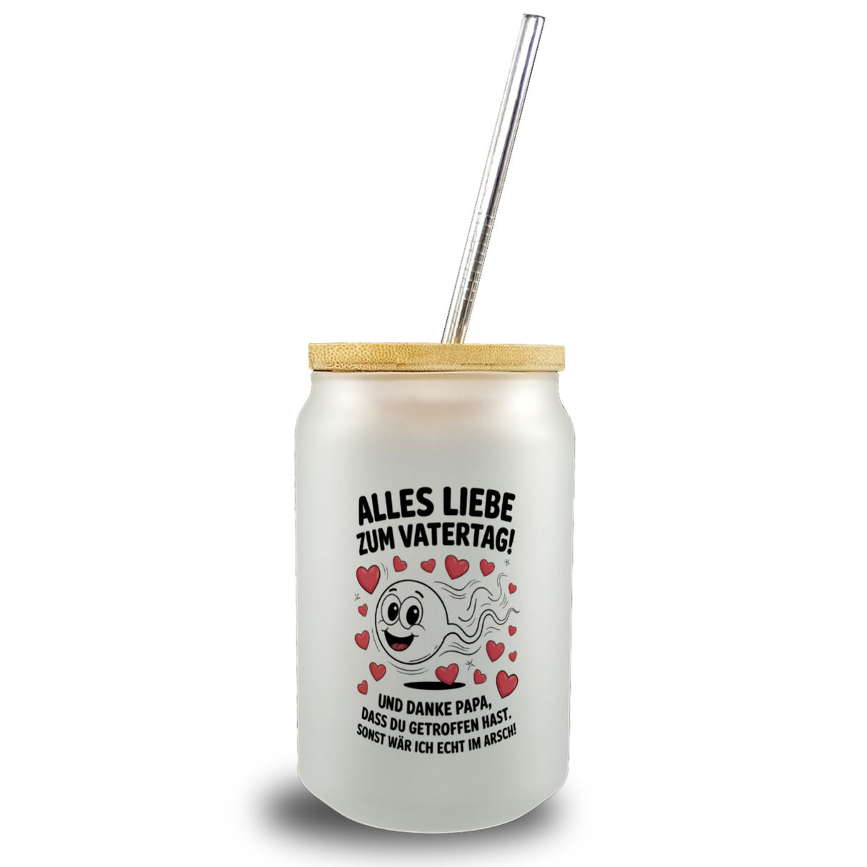 Alles Liebe zum Vatertag Trinkglas mit Bambusdeckel Spermien Cartoon mit Herzen