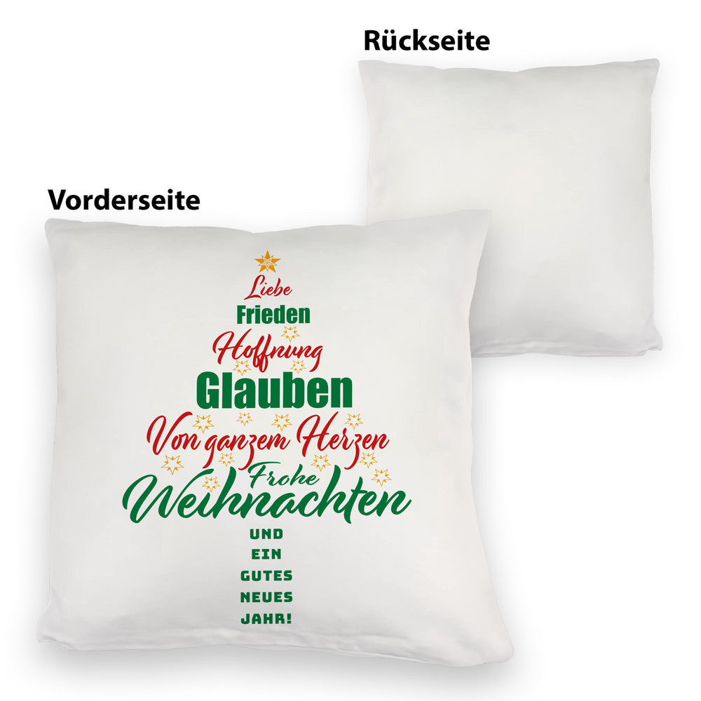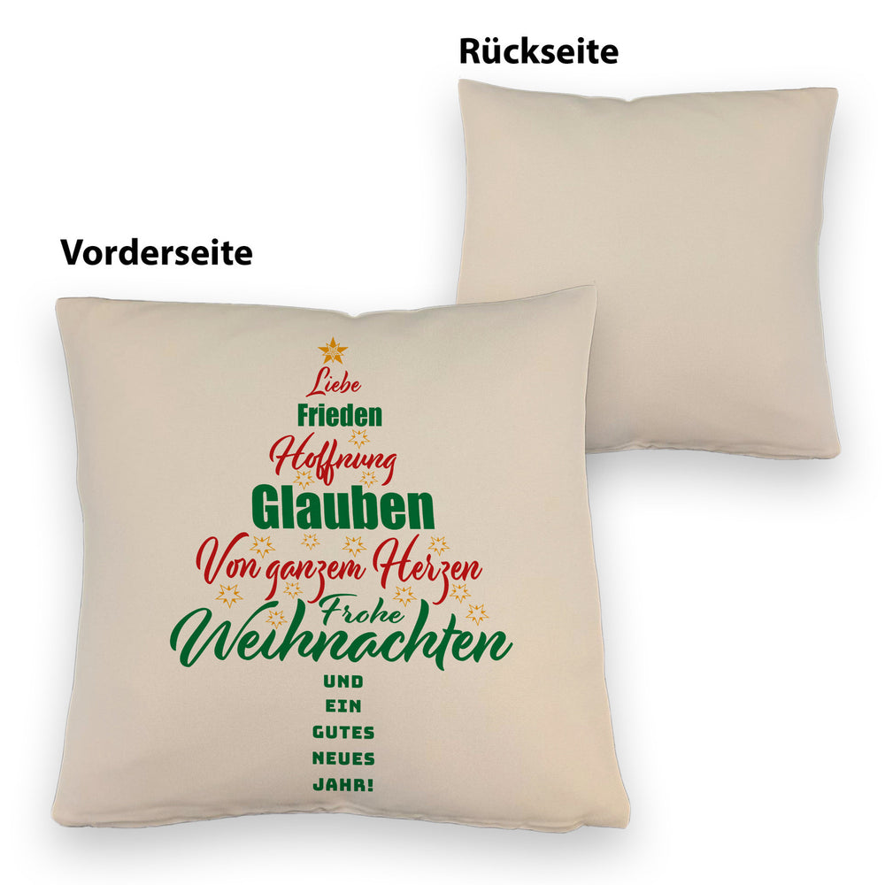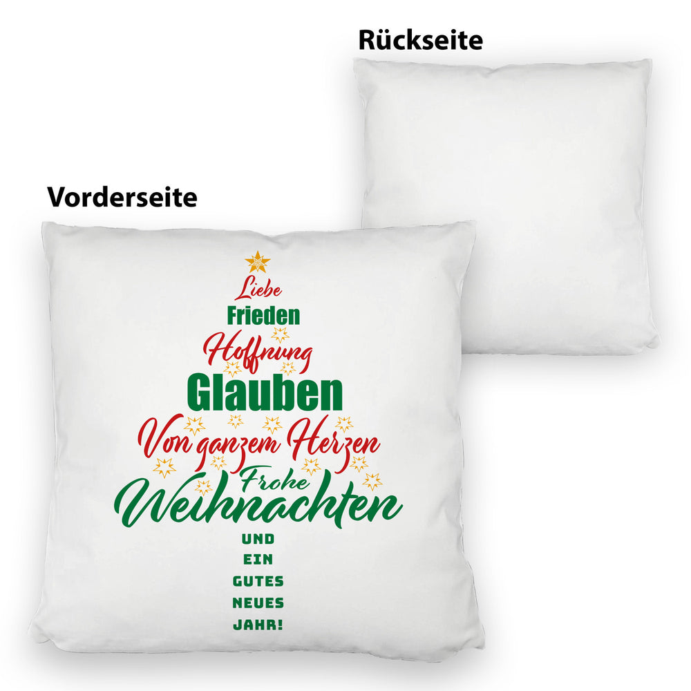 - 1x Christbaum Kissen mit Spruch Frohe Weihnachten und gutes neues Jahr in der gewählten Ausführung