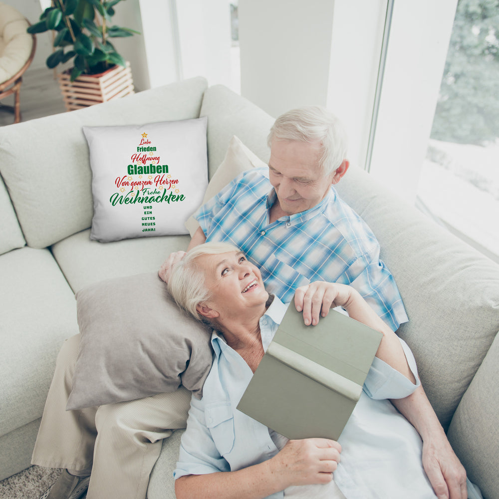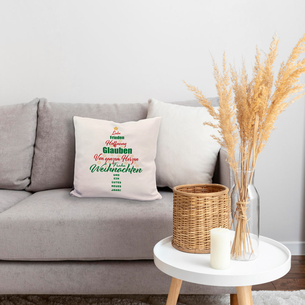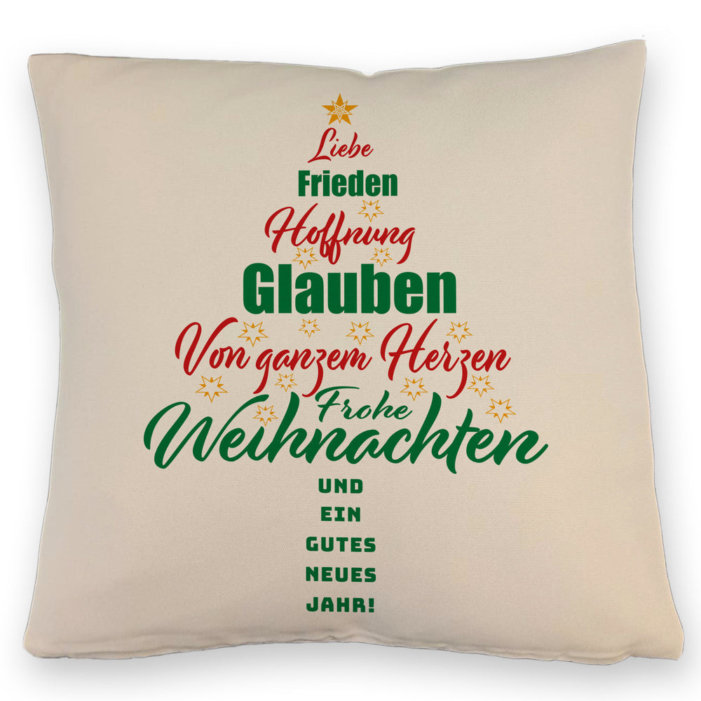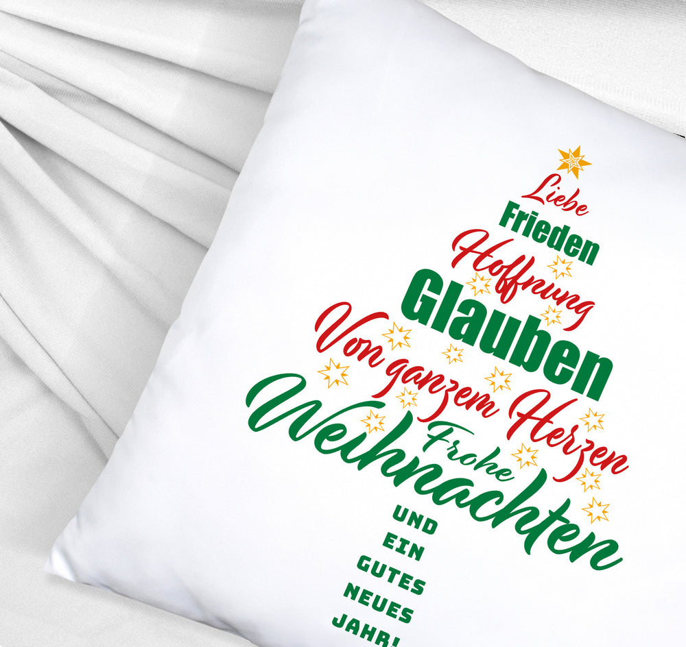 - 1x Christbaum Kissen mit Spruch Frohe Weihnachten und gutes neues Jahr in der gewählten Ausführung