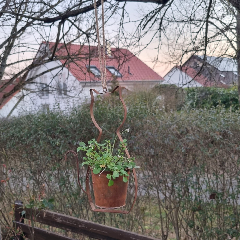 1x Katze Blumentopf bestehend aus 1x Blumentopf und 1x Aufhängung.