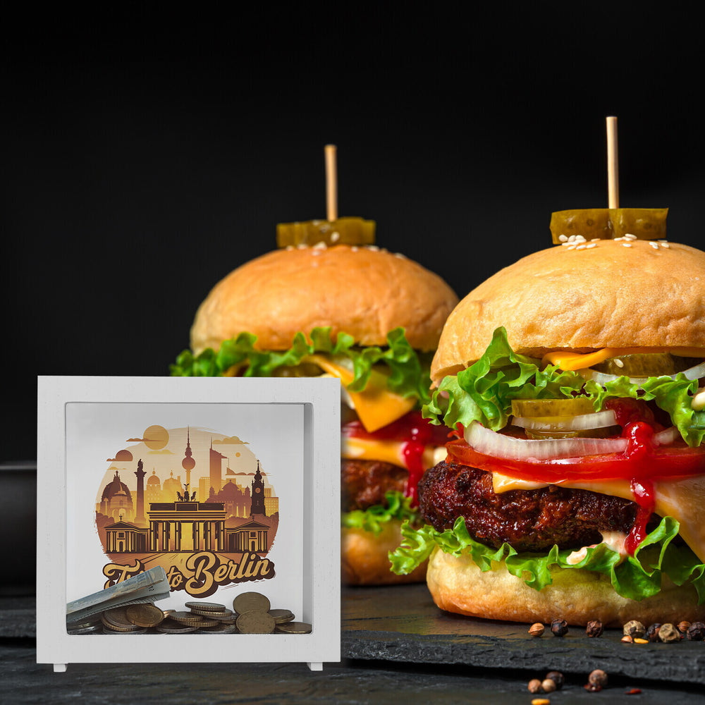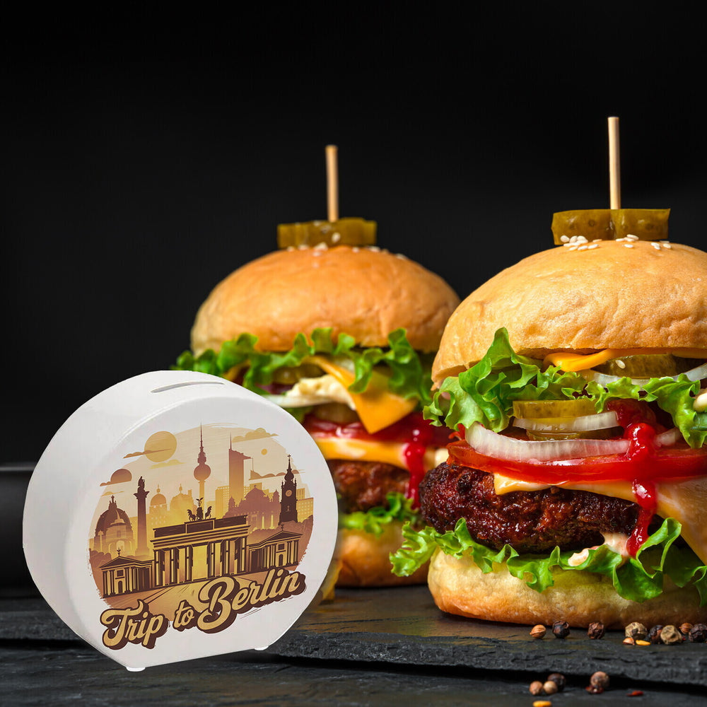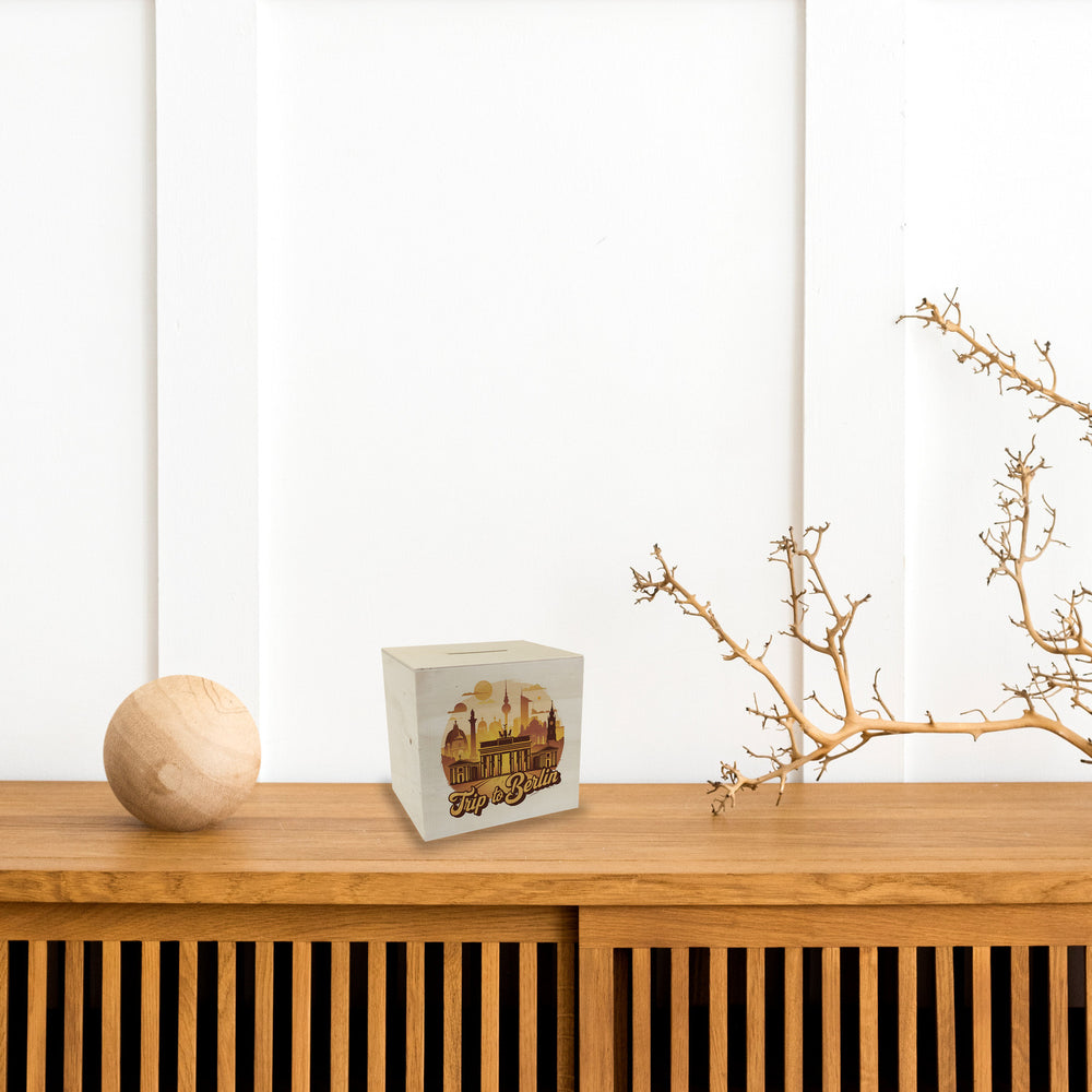 - Du liebst Berlin und willst dein Kleingeld stilvoll sammeln? Mit der "Trip to Berlin" Spardose machst du eine Reise durch die Hauptstadt, ohne dein Wohnzimmer zu verlassen. Dieses Retro-Design zeigt Berlins ikonische Silhouette, darunter das Brandenburger Tor, den Fernsehturm und das Reichstagsgebäude.