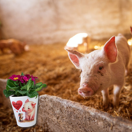 Schwein mit Maus und Herz Blumentopf mit Spruch Schön dass es dich gibt