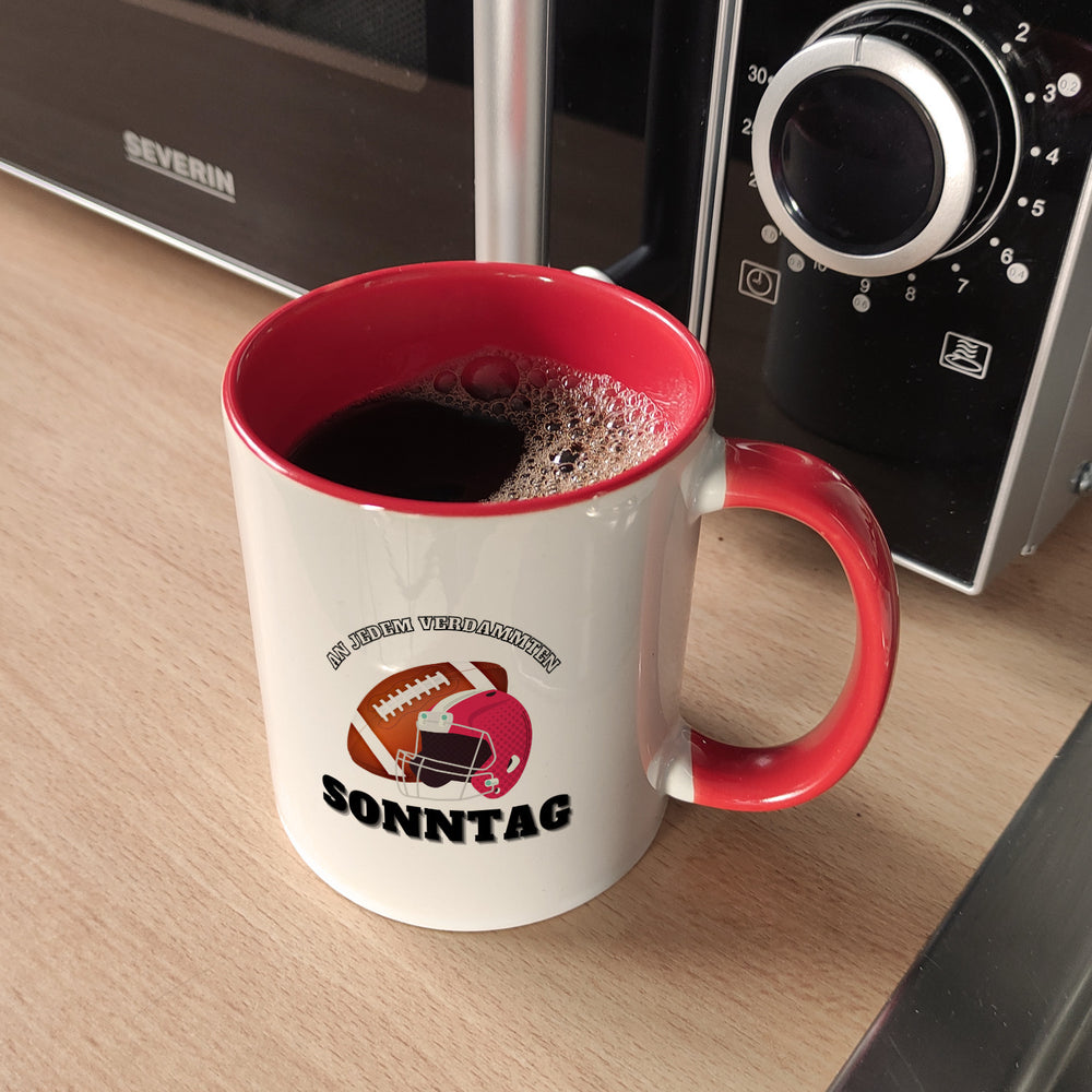 • 1x American Football Kaffeebecher mit Spruch An jedem verdammten Sonntag in der gewählten Ausführung