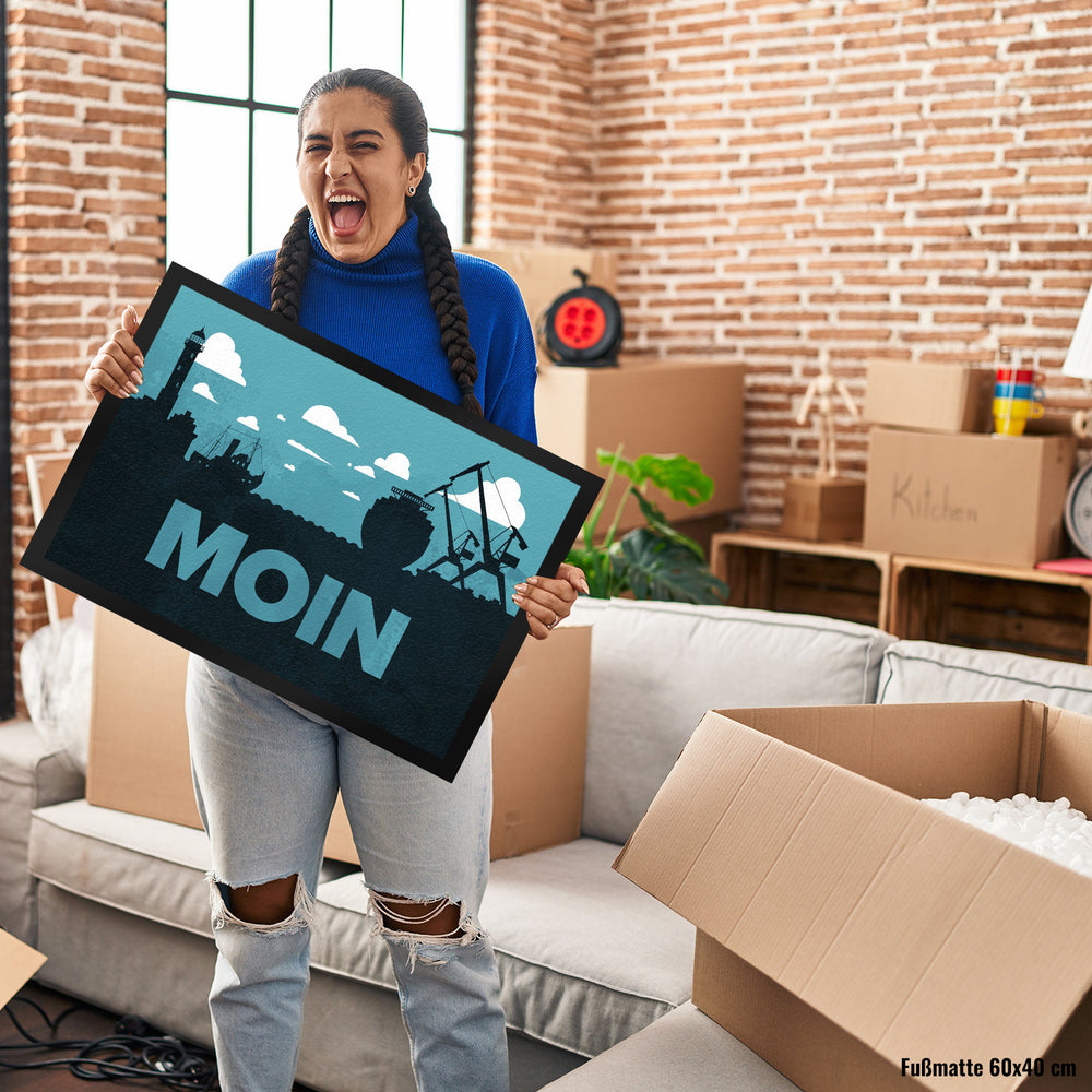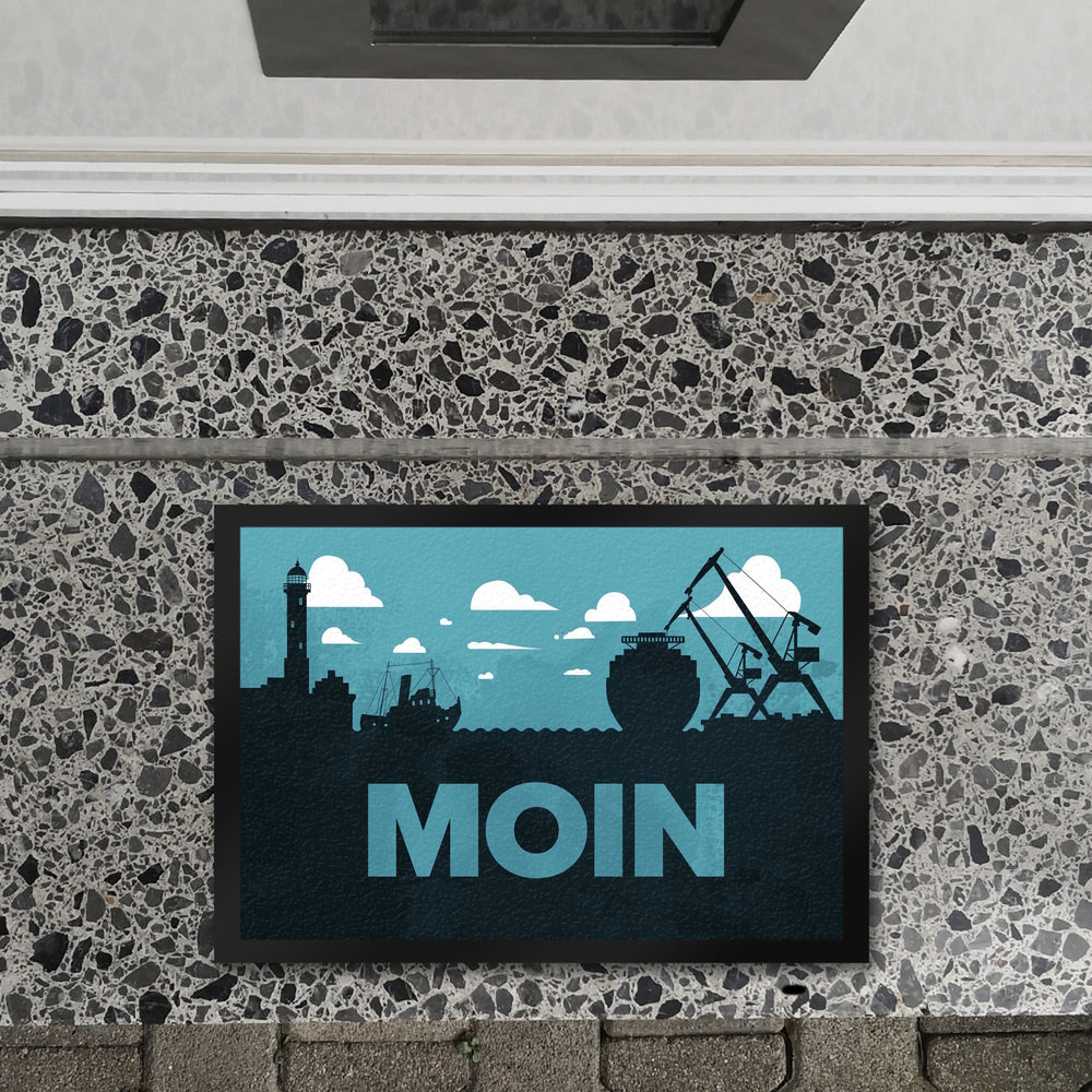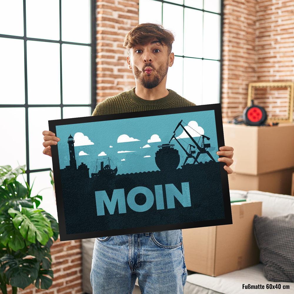 - Du suchst nach einer Fußmatte mit einem Hafenmotiv und der typische norddeutschen Begrüßung Moin? Dann ist dieser Fußabtreter perfekt für dich geeignet.