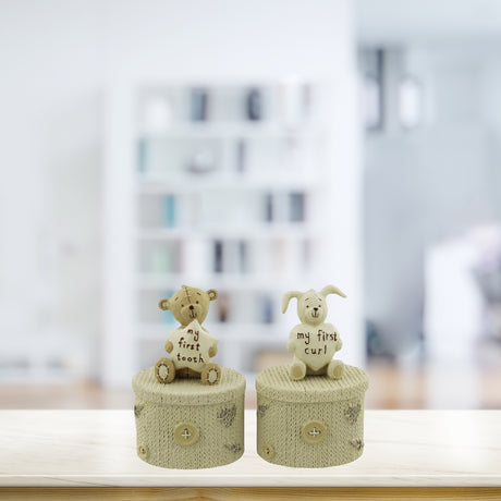 Teddy und Hase Locke und Milchzähne Aufbewahrungsboxen im 2er Set