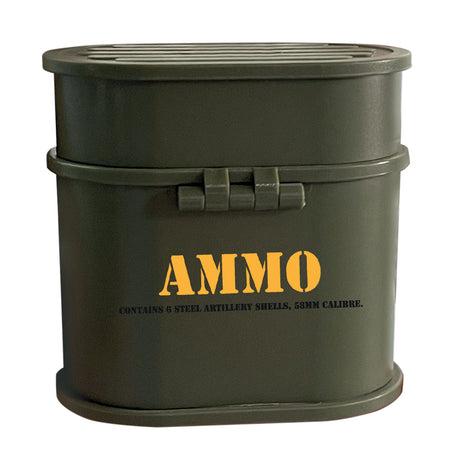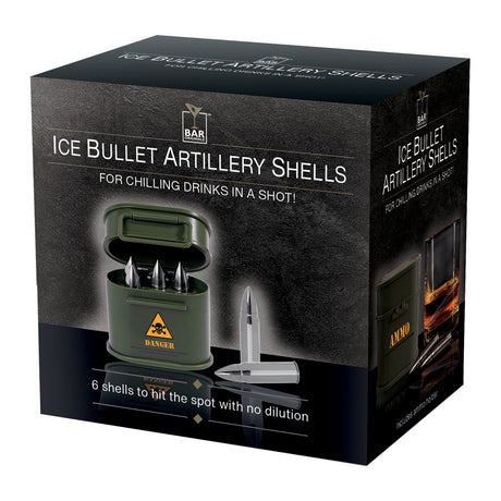 Kaliber 58mm Patrone Eiswürfel aus Metall mit Munitionskoffer im 6er Set