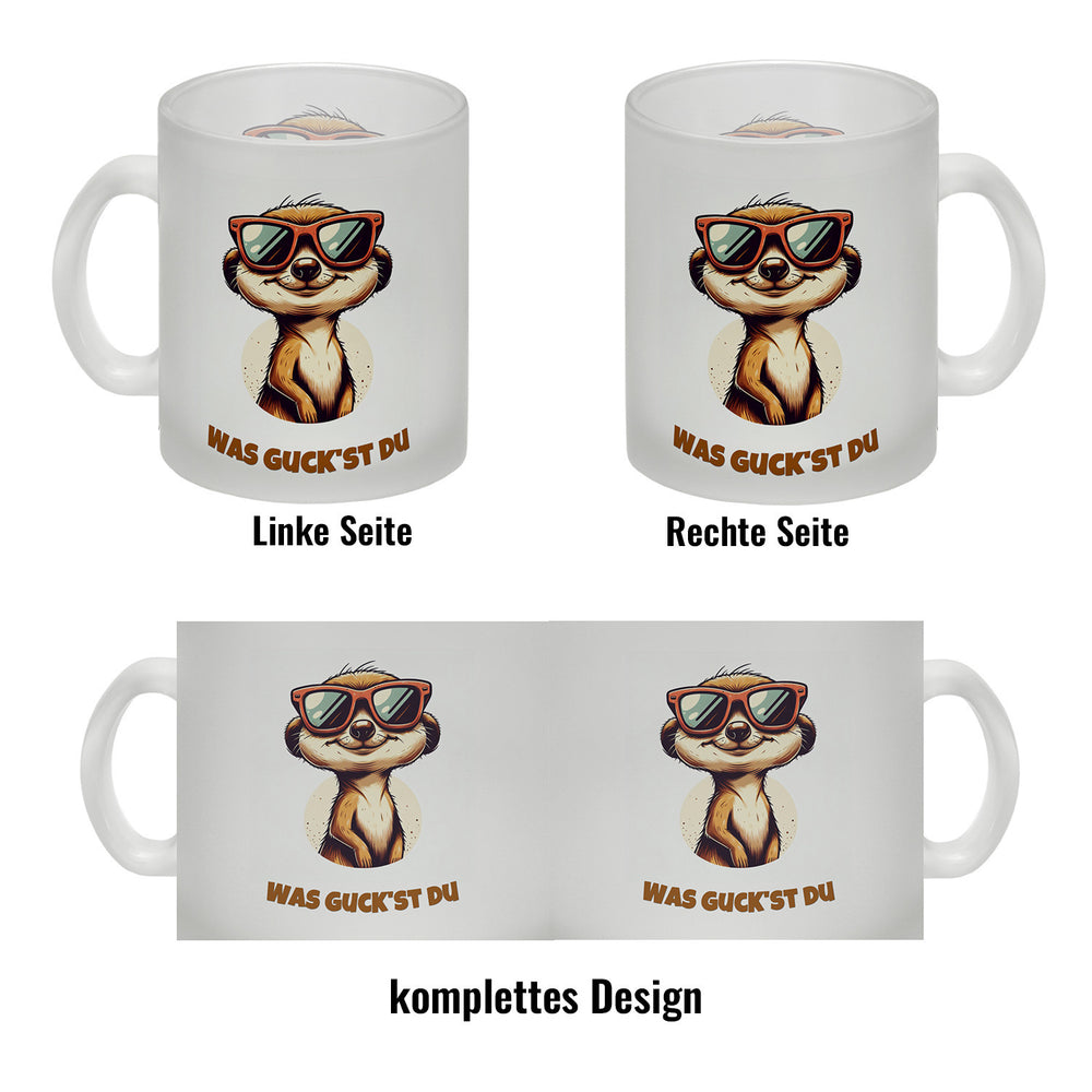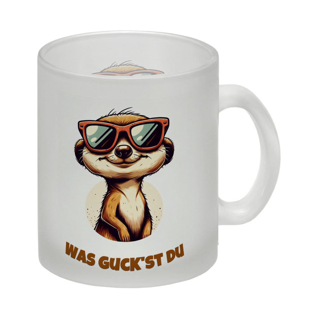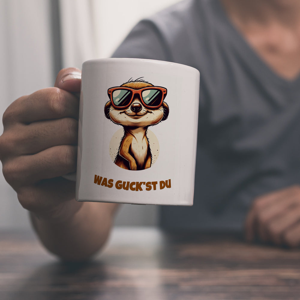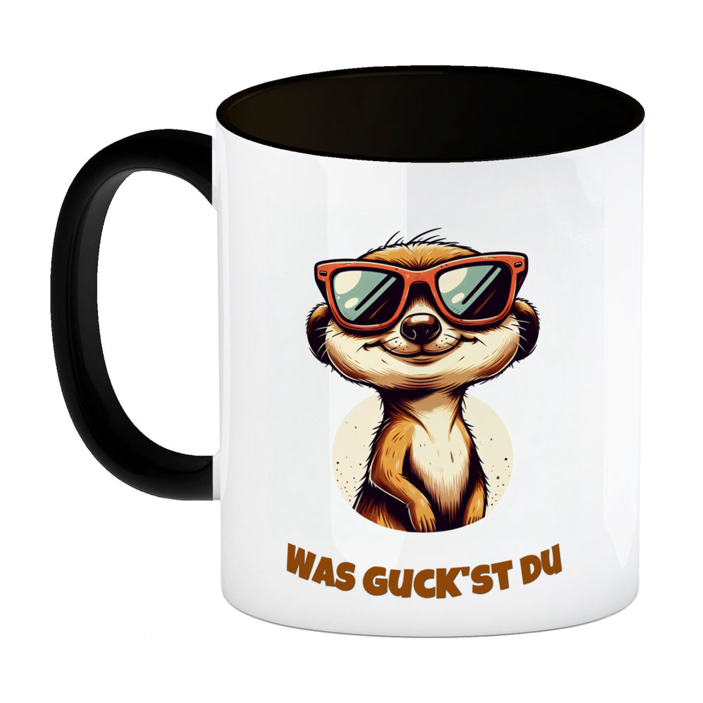 Erdmännchen Geschenke Kaffeebecher mit Spruch Was guckst du