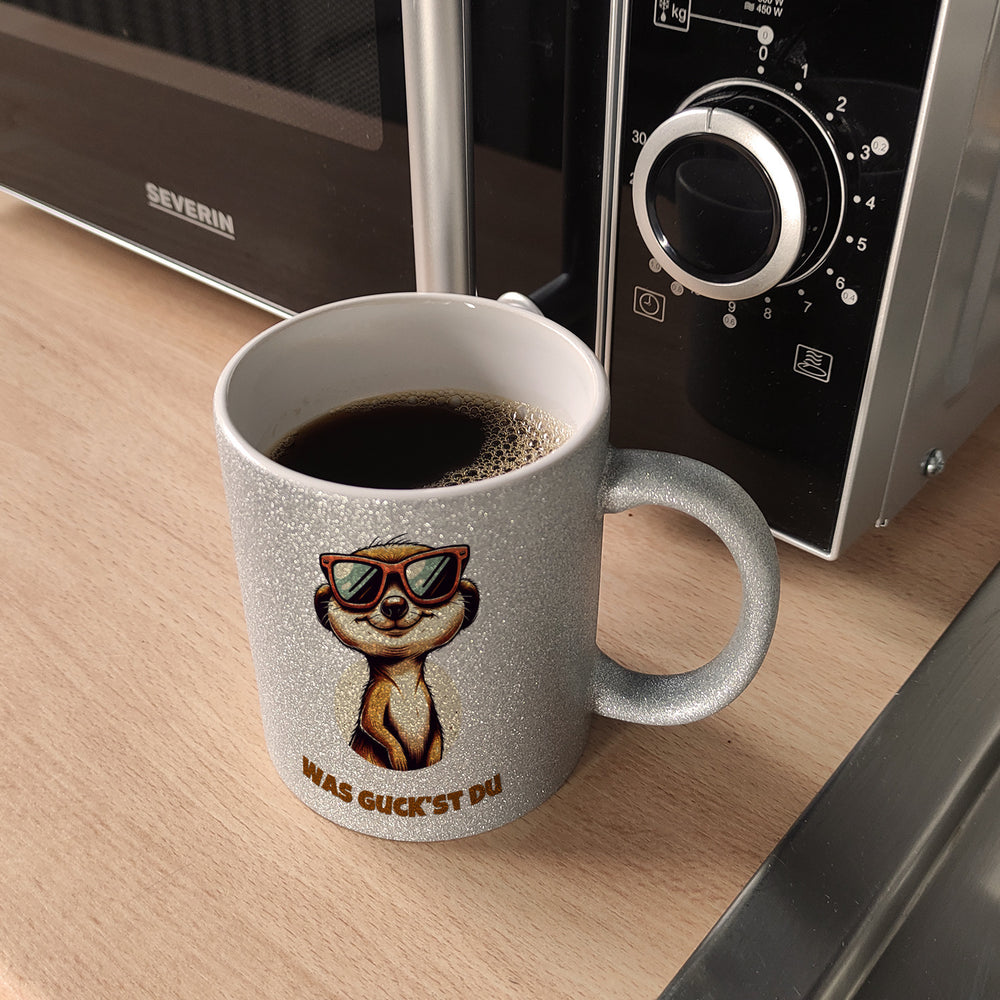 - Wach auf und glänze mit dem "Was gucKst du" Kaffeebecher! Unser modisches Säugetier aus der Savanne rockt die Sonnenbrille als wäre es die Wüsten-Sonnenfinsternis. Ein Must-Have für jeden, der Stil hat und sich fragt, warum alle Erdmännchen so cool gucken!