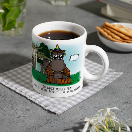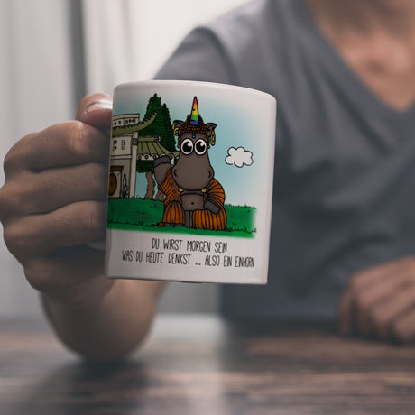 Ab €12,95Grundpreis /Nicht verfügbarAuf LagerHoneycorns Kaffeebecher mit Einhorn Buddha Motiv und Spruch: Du wirst morgen sein ..
