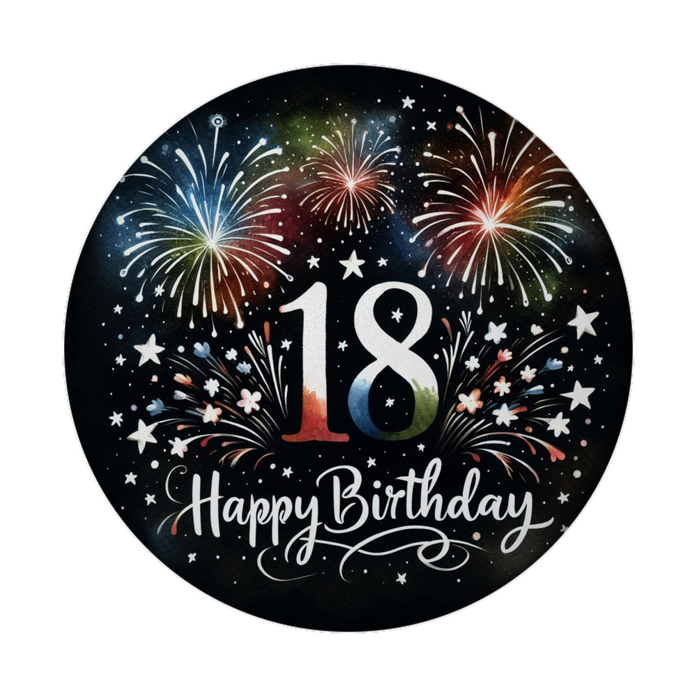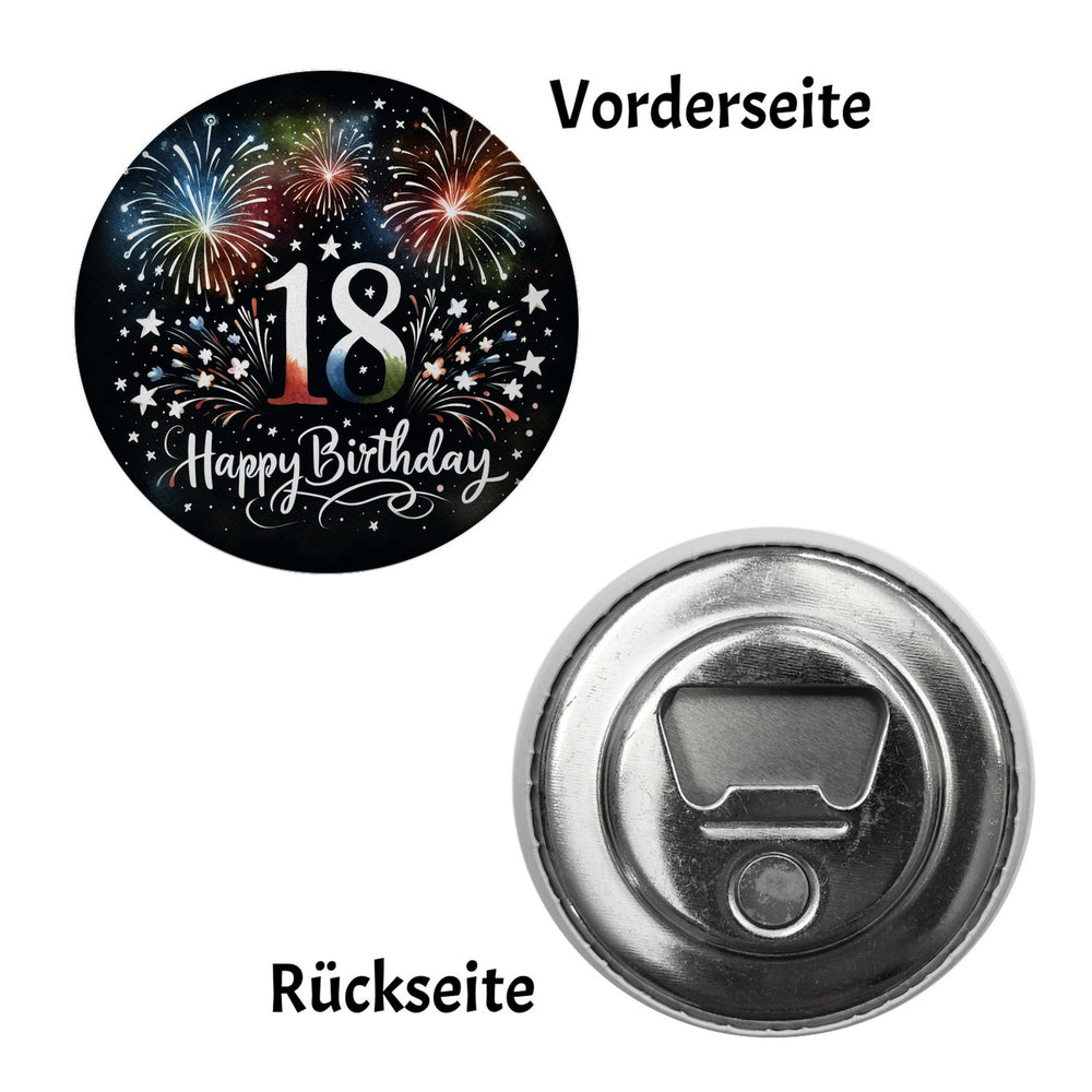 • 1x 18. Geburtstag Feuerwerk Magnet rund mit Spruch Happy Birthday 18 in der gewählten Ausführung