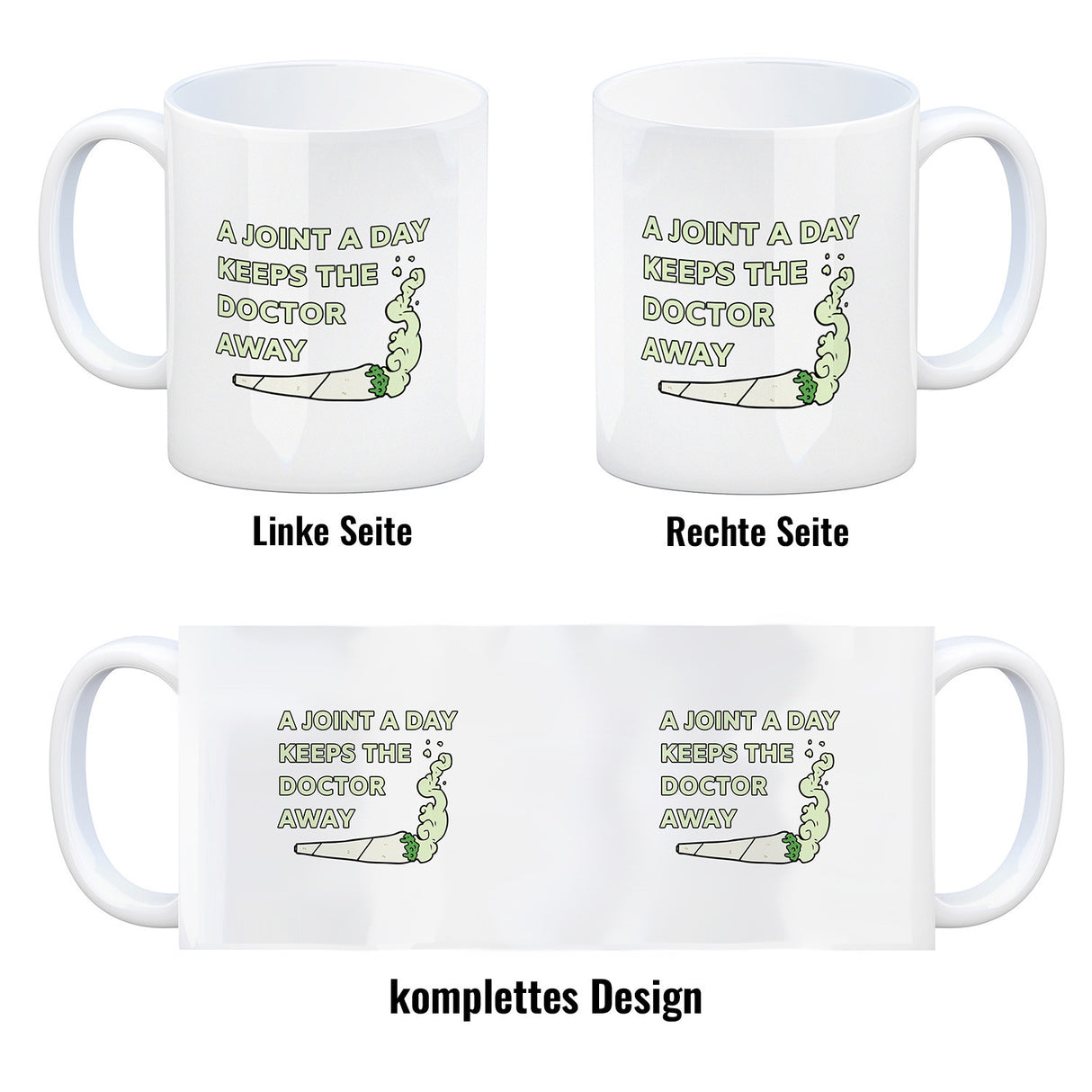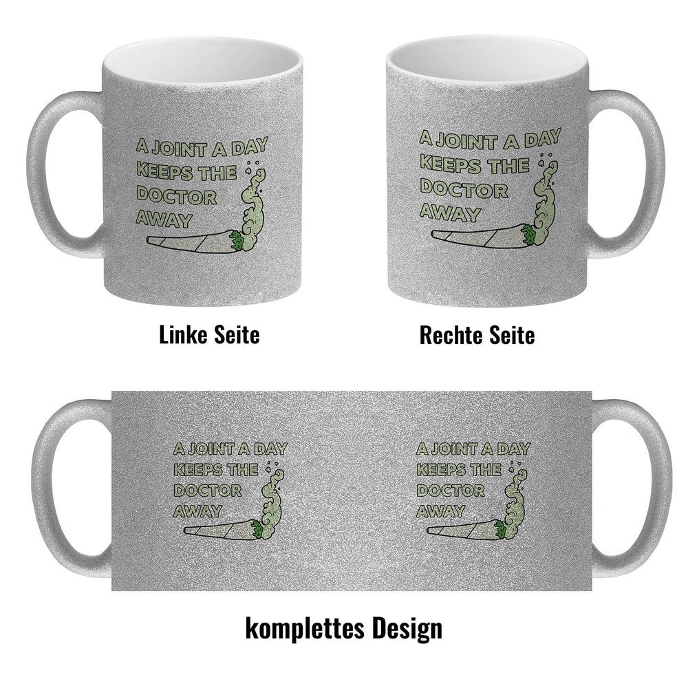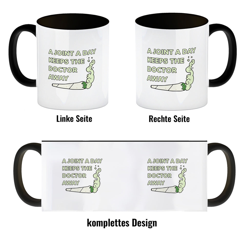 - 1x A Joint A Day Keeps The Doctor Away Kaffeebecher mit Spruch in der gewählten Ausführung