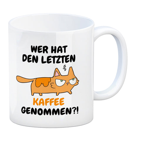 Katzen Kaffeebecher mit Spruch Wer hat den letzten Kaffee genommen?!
