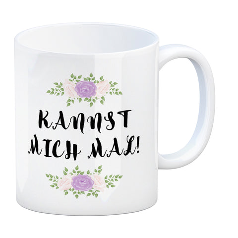 Kannst mich mal! Kaffeebecher mit Spruch und Blumen