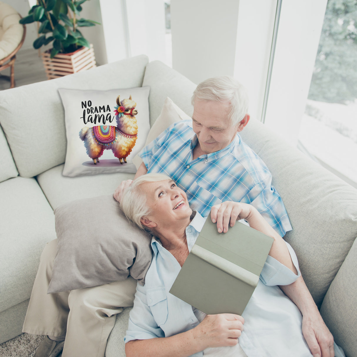 - Flauschiges Alpaka-Kissen mit bunter Satteldecke gesucht? Sag Hallo zu deinem neuen, tierisch tollen Freund! Unser "No Drama Lama"-Kissen bringt nicht nur farbenfrohe Vibes, sondern auch eine ordentliche Portion flauschige Gemütlichkeit in dein Zuhause.