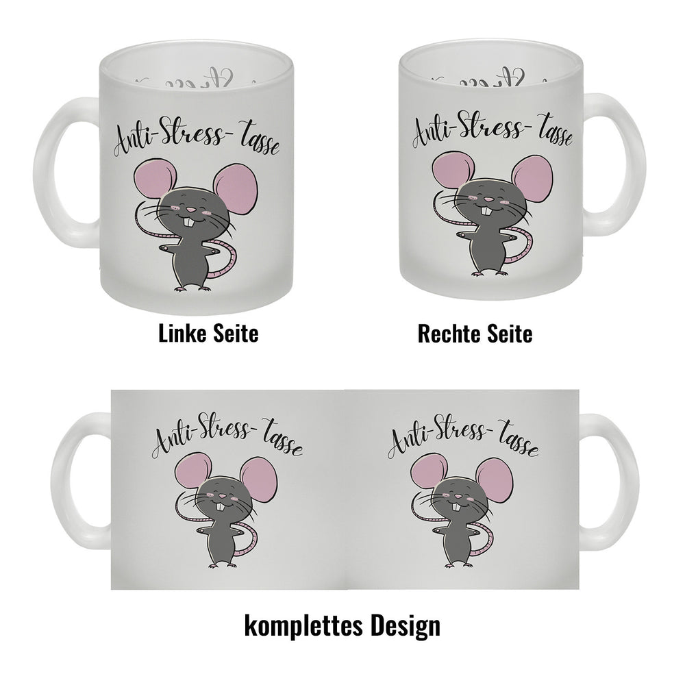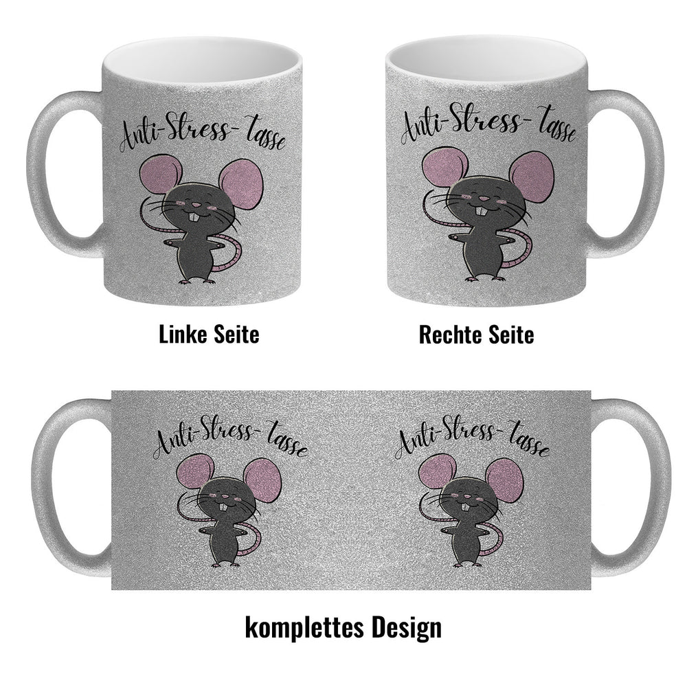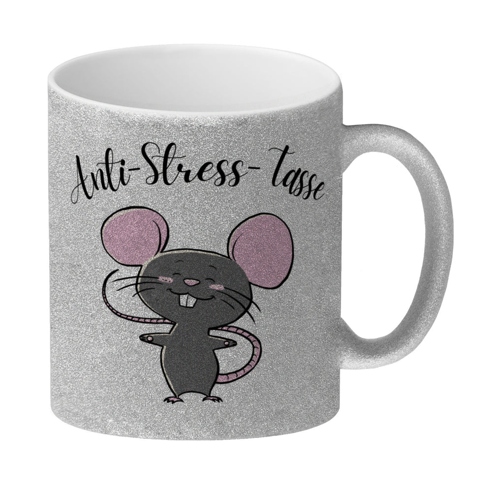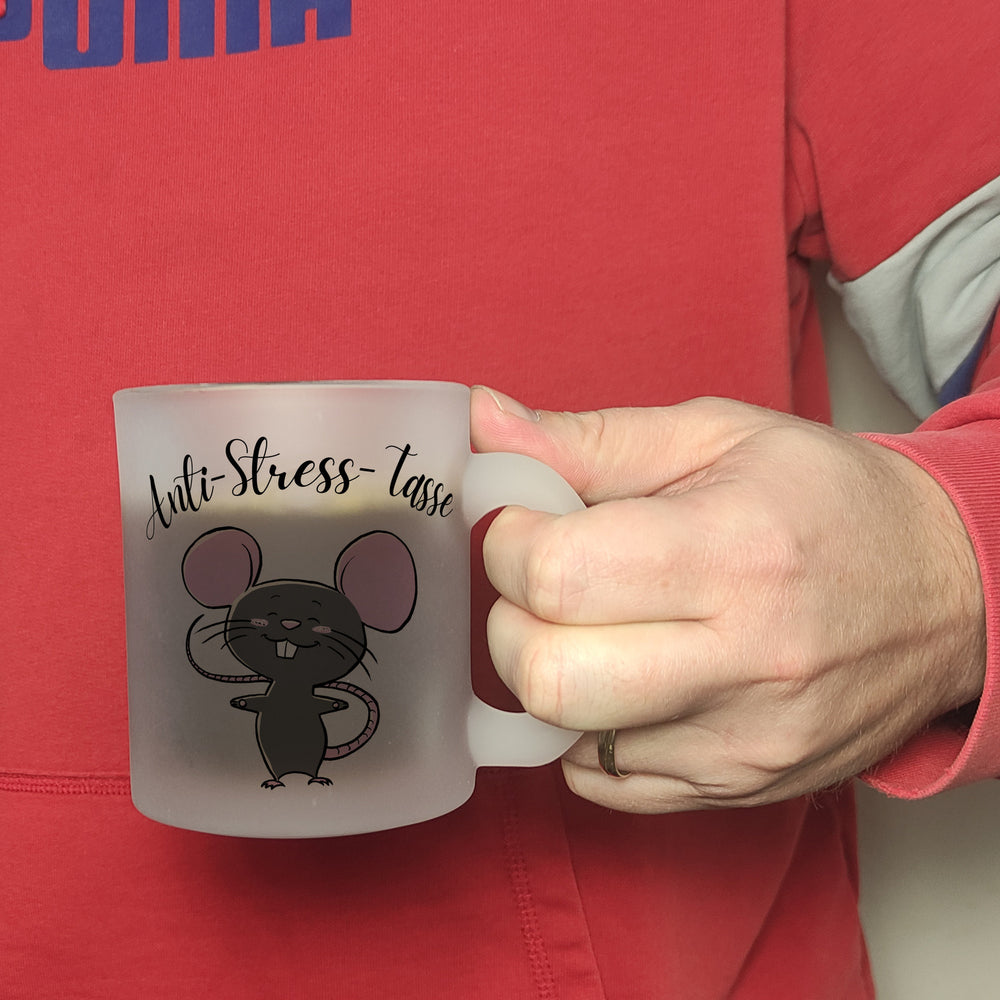 Dieser Anti-Stress Maus Kaffeebecher ist ein perfektes Geschenk für alle, die sich eine kleine Auszeit vom stressigen Alltag gönnen möchten. Der Becher ist mit einem niedlichen Maus-Motiv und einem humorvollen Spruch illustriert, der dazu ermutigt, sich Zeit für eine Pause zu nehmen. Mit seinem Fassungsvermögen von ca. 300ml bietet er genug Platz für Ihr Lieblingsgetränk. Erhältlich in unterschiedlichen Varianten: Als weiße Standardtasse, mit farbigem Henkel und Innenseite, als edle Glastasse oder in der exklusiven Silberedition mit Glitzereffekt. Mit Sorgfalt bedruckt in unserer Tassen-Manufaktur in Deutschland, ist dieser Kaffeebecher mehr als nur ein Getränkebehälter - er ist ein täglicher Begleiter, der bei jeder Tasse Kaffee oder Tee dazu beitragen kann, den Stress abzubauen und das Kaffeeerlebnis zu etwas Besonderem zu machen. Er ist spülmaschinenfest und somit praktisch und pflegeleicht. Verpassen Sie nicht die Chance, sich oder jemandem aus Ihrem Umfeld dieses schöne Geschenk zu machen!