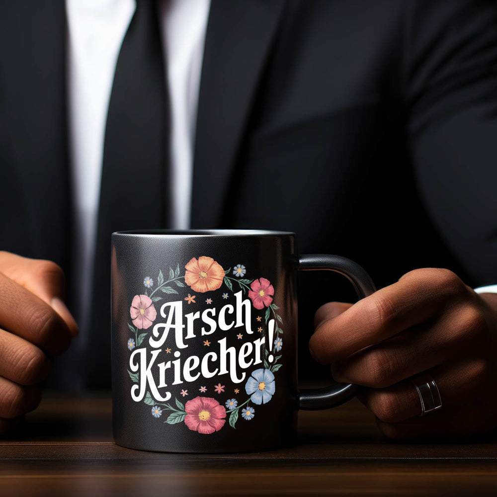 - Du suchst das perfekte Geschenk für den humorvollen Freund oder den Kollegen mit dem Hang zur Schleimerei? Greif zu! Unsere "Arsch Kriecher!" Tasse verpackt Lacher, Kaffee und Blumenpracht in einem. Ein originelles Präsent, das lange in Erinnerung bleiben wird – schließlich beginnt jeder Morgen am besten mit einem Grinsen!