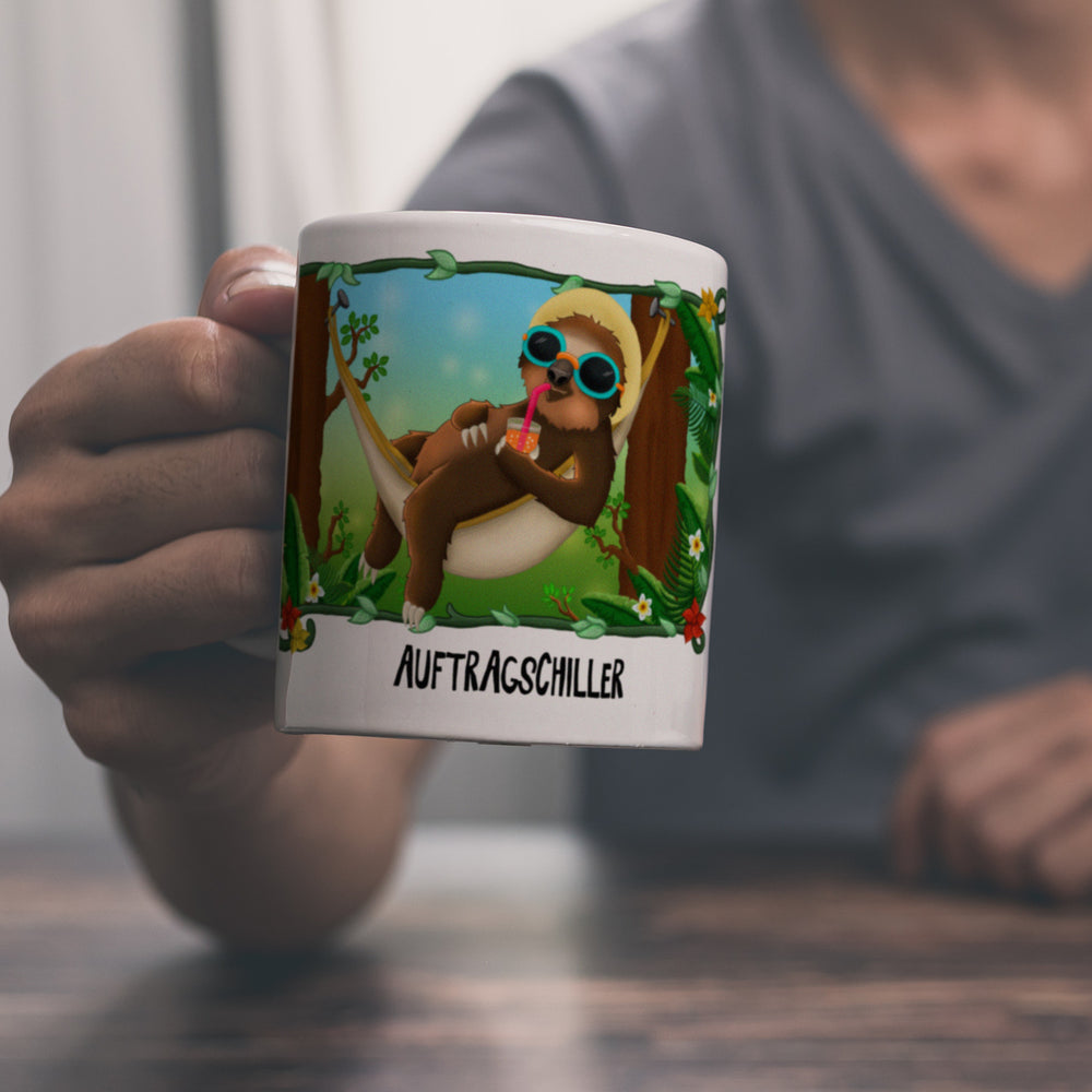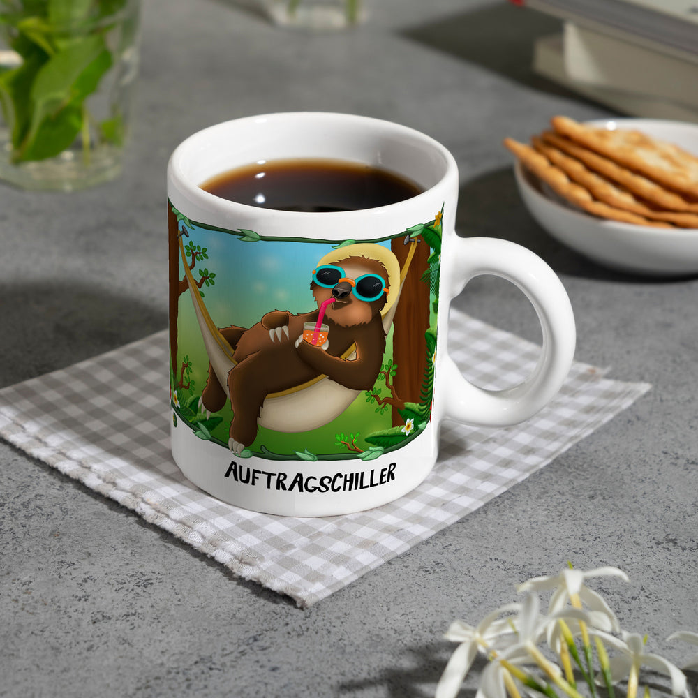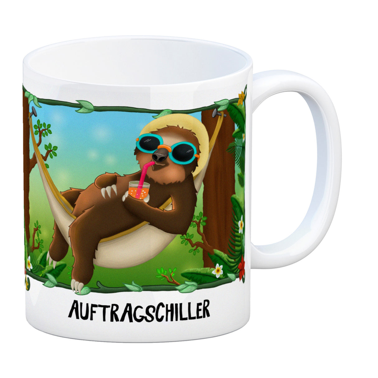 - Lieferumfang: 1x Kaffeebecher mit Faultier in Hängematte Motiv und Spruch: Auftragschiller