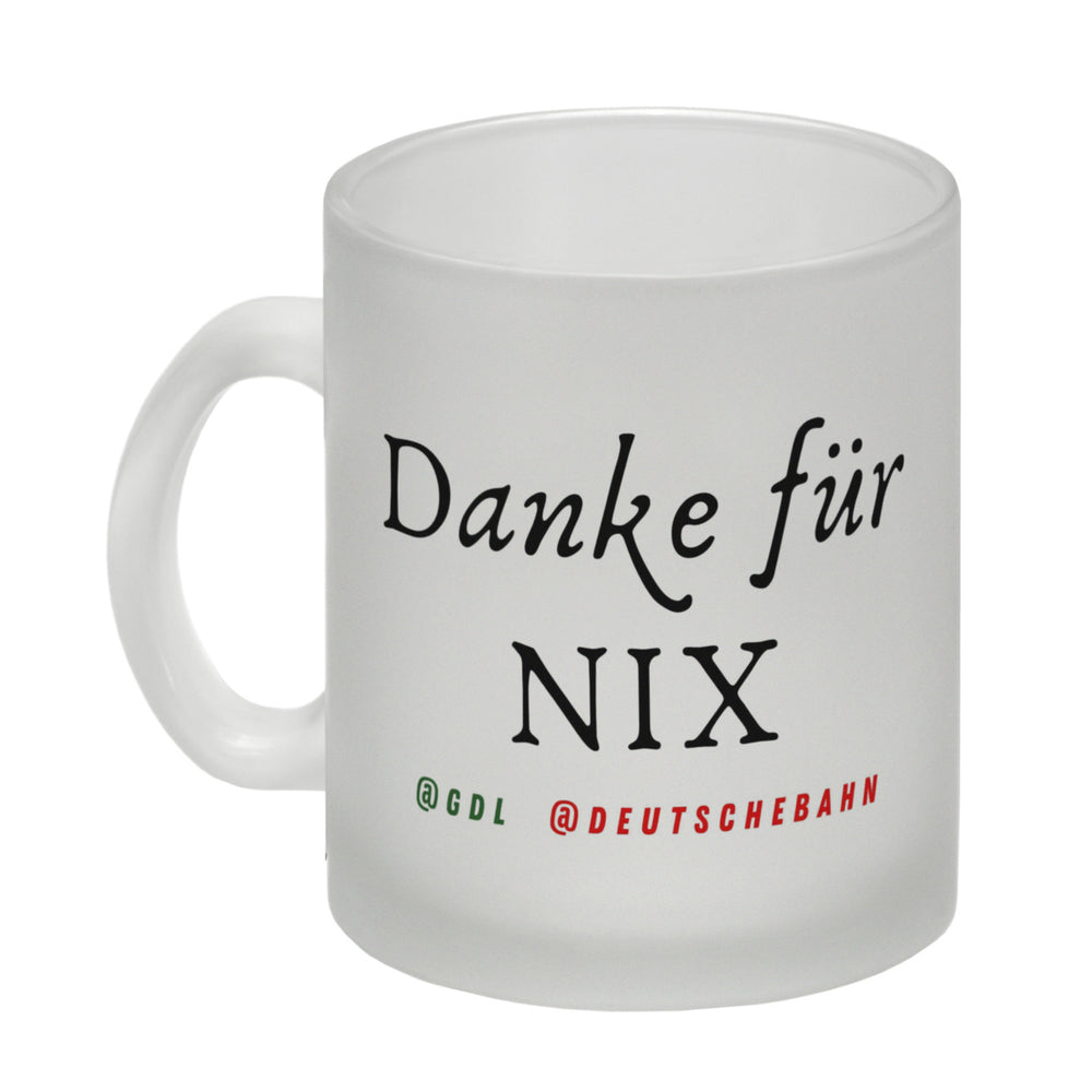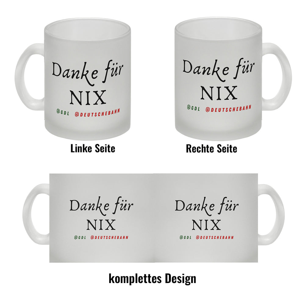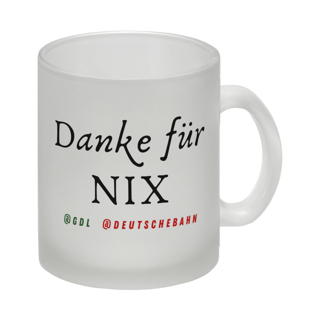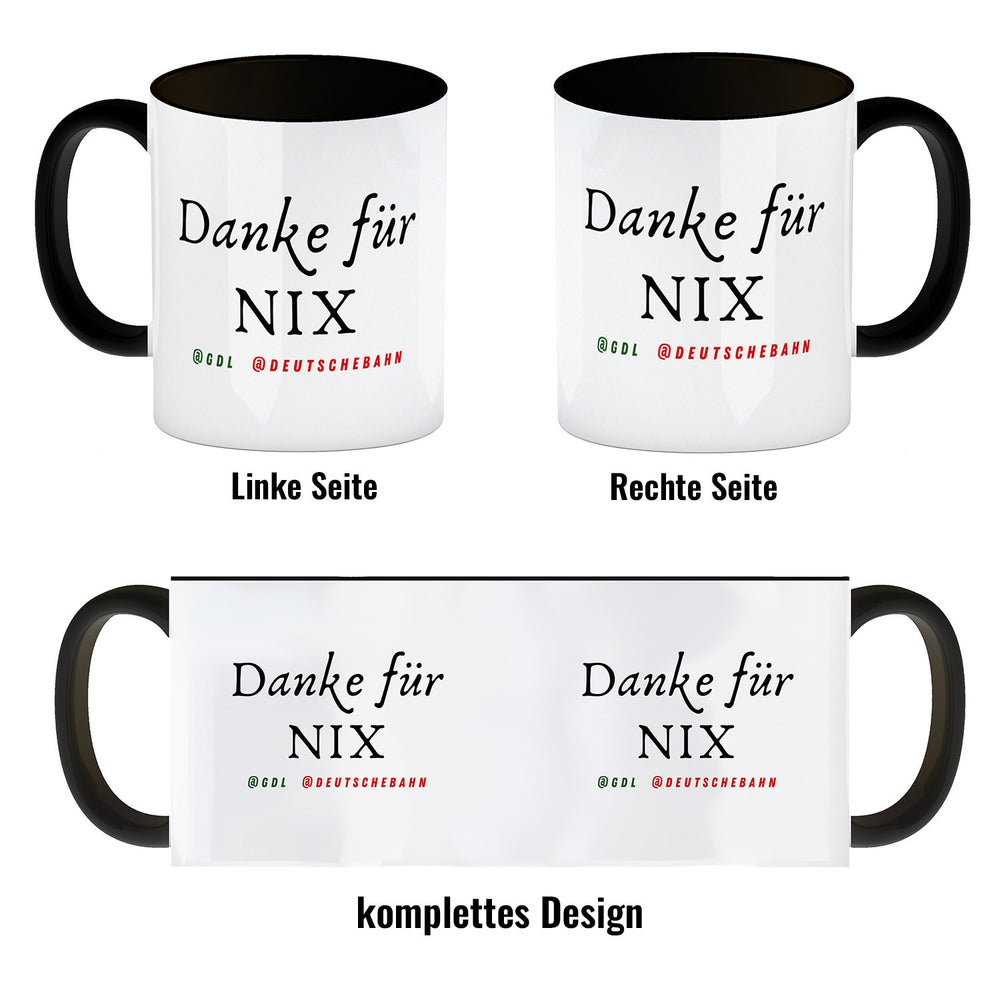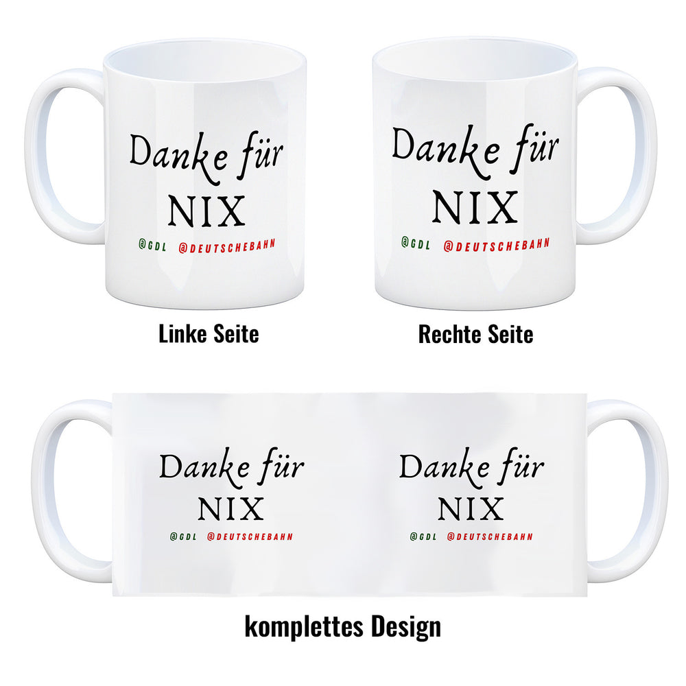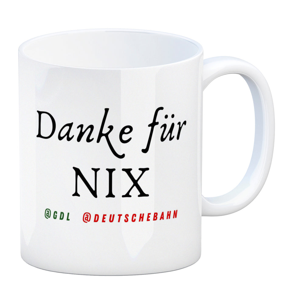 - 1x Bahnstreik Kaffeebecher mit Spruch Danke für Nix @GDL @Deutschebahn in der gewählten Ausführung