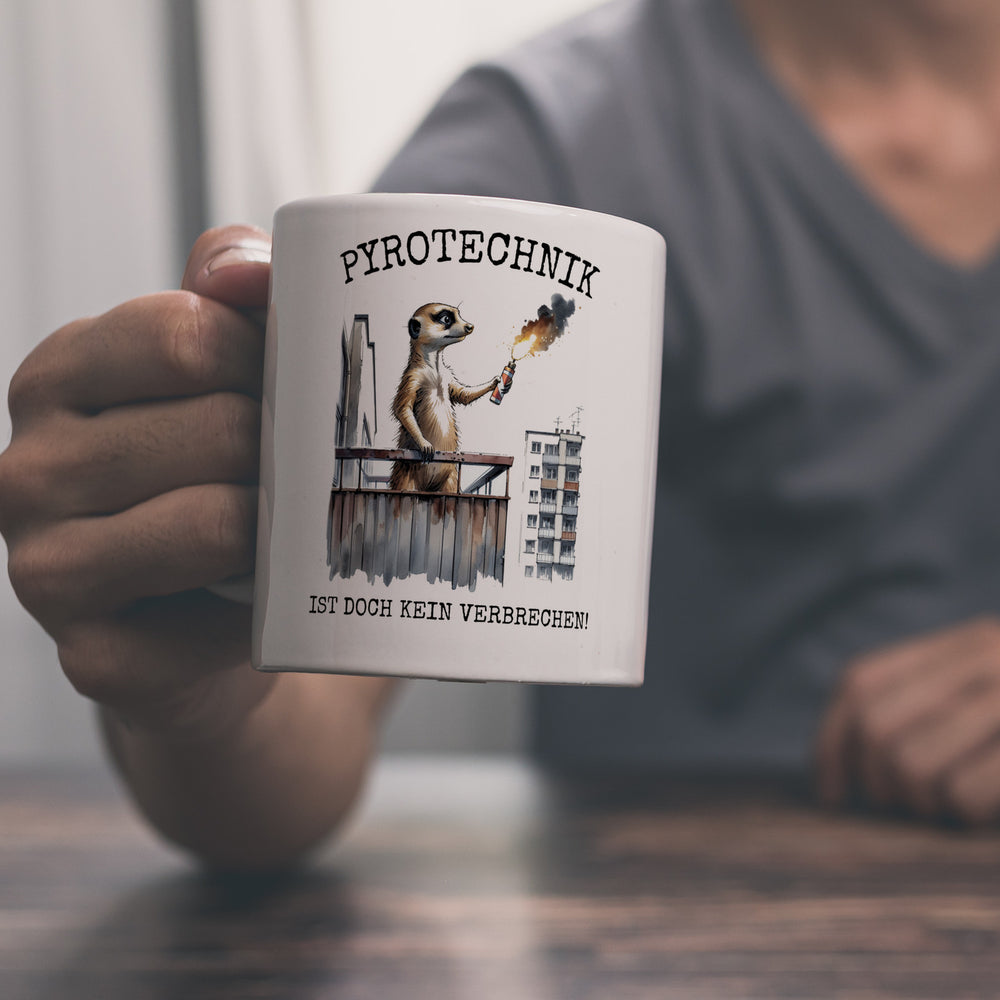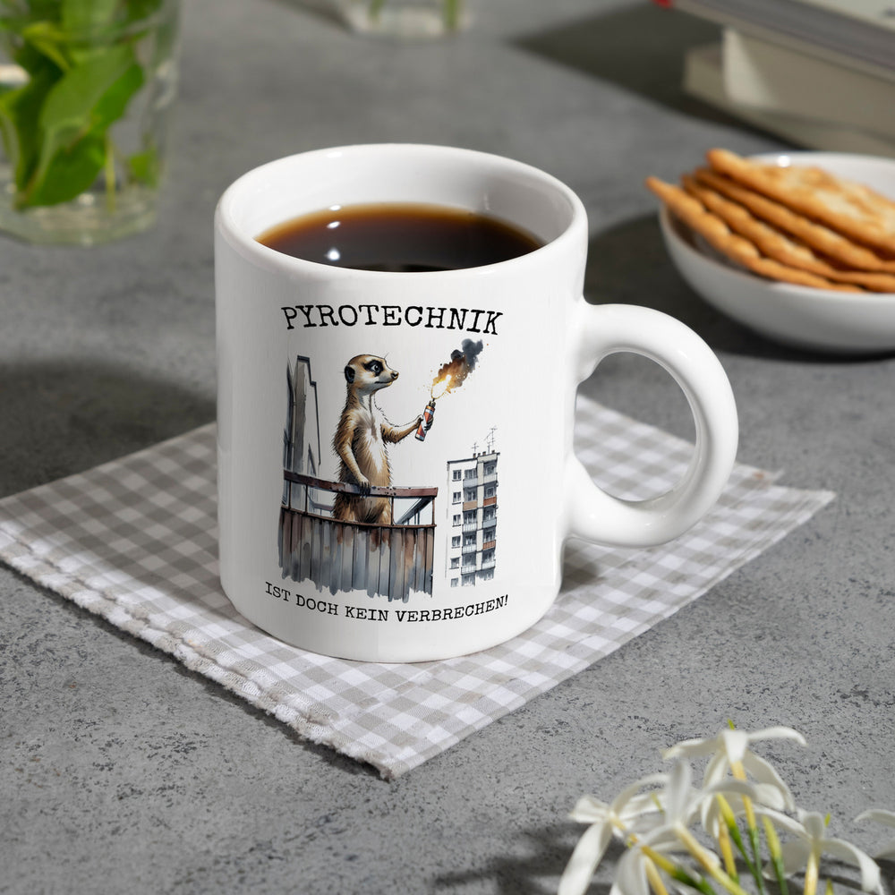 Balkon-Ultra Erdmännchen mit Pyrofackel Kaffeebecher mit Spruch Pyrotechnik ist doch kein Verbrechen
